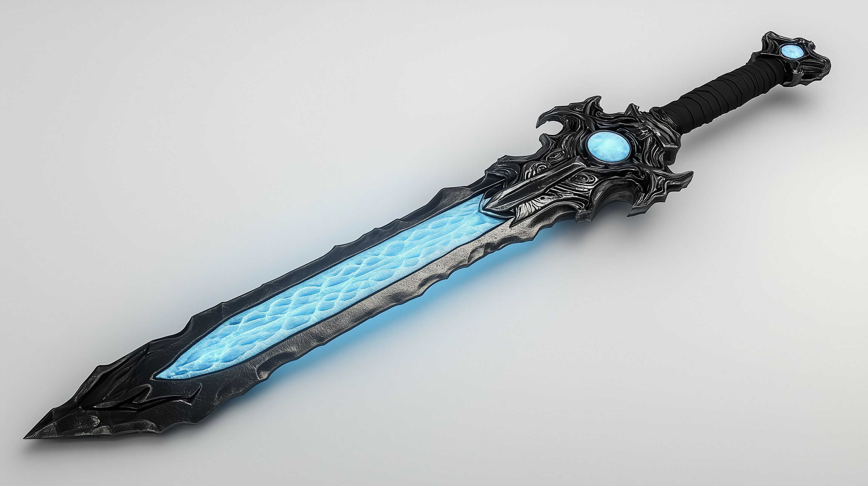 3D Chibi Großschwert aus dunklem Metall und magischer Energie
