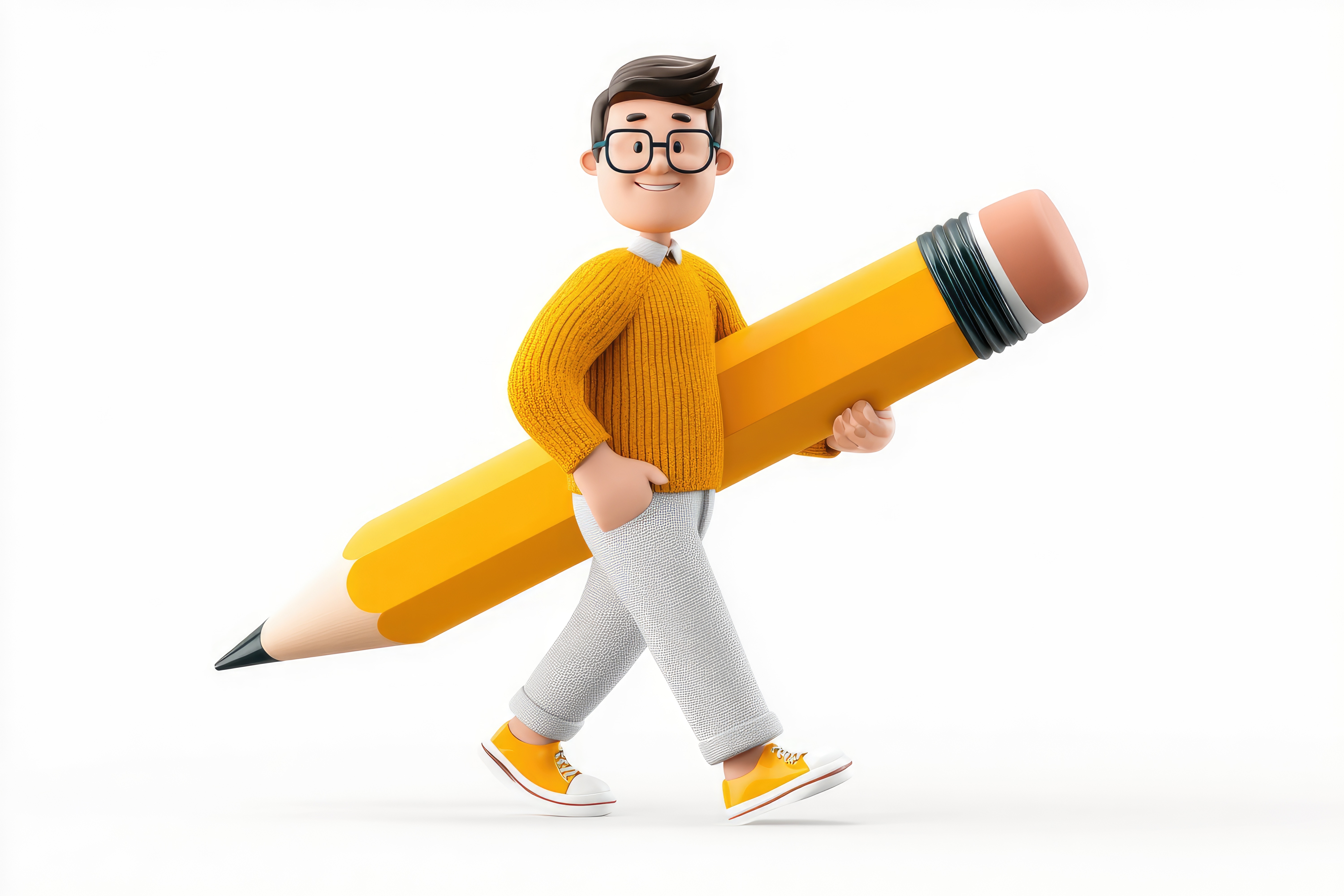 3D-Illustration eines Mannes mit großem Bleistift
