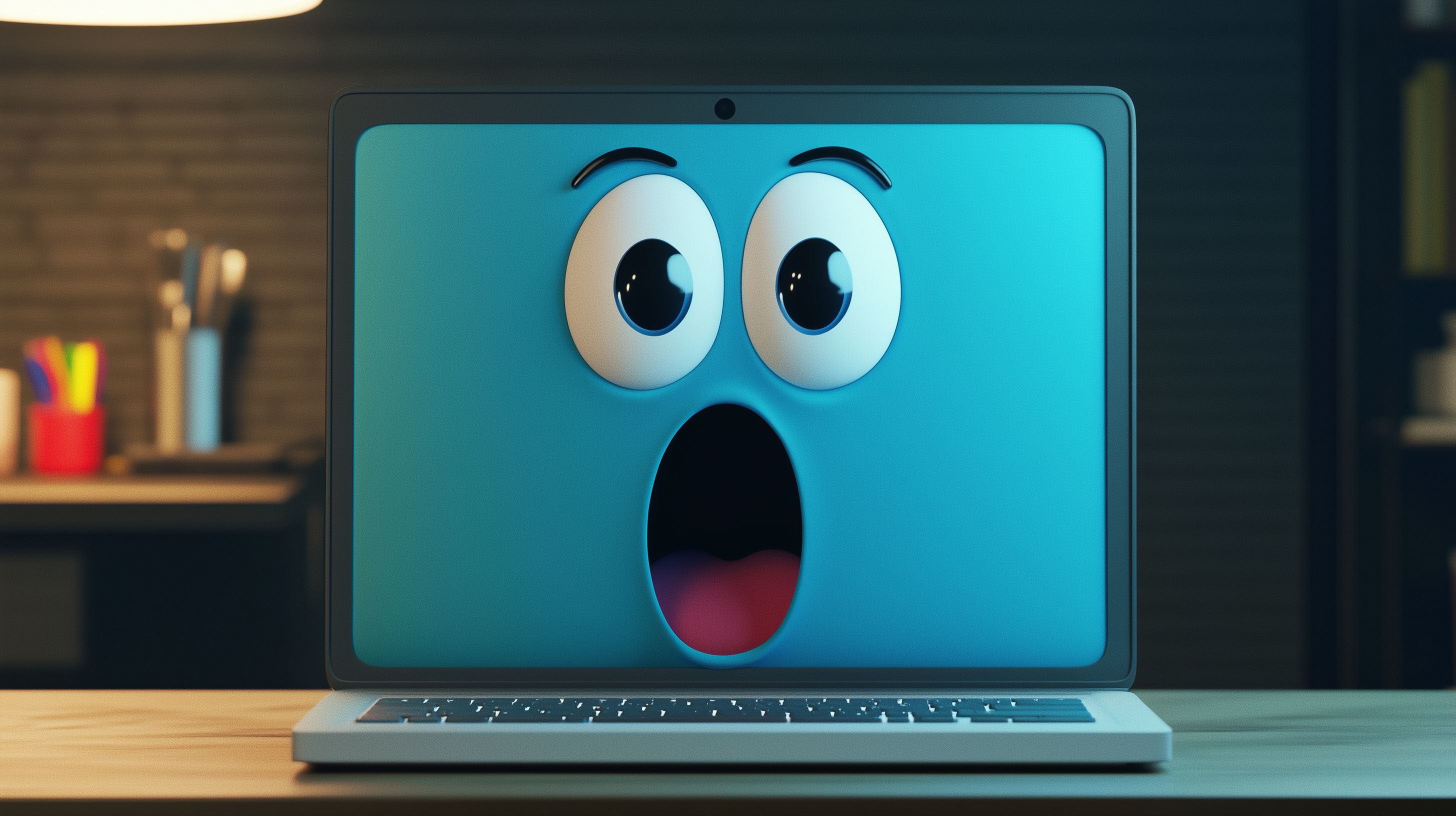 3D Illustration eines überraschten Laptop-Gesichts