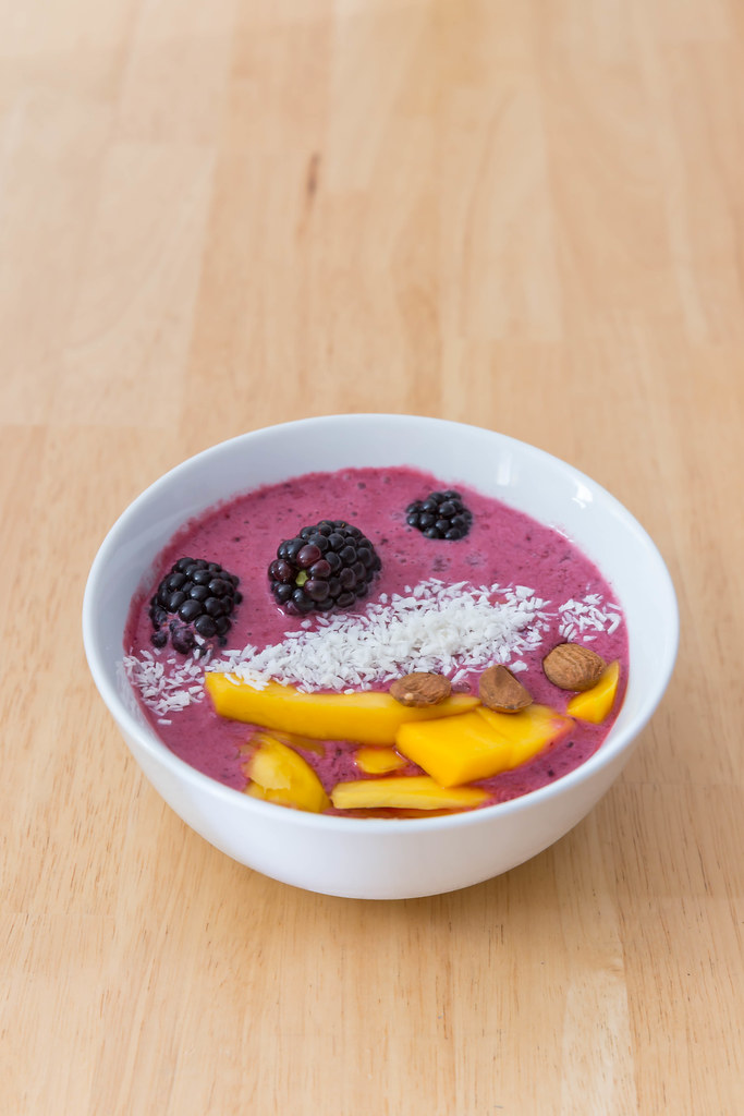 Acai Bowl with Mango, Almonds and desiccated coconut