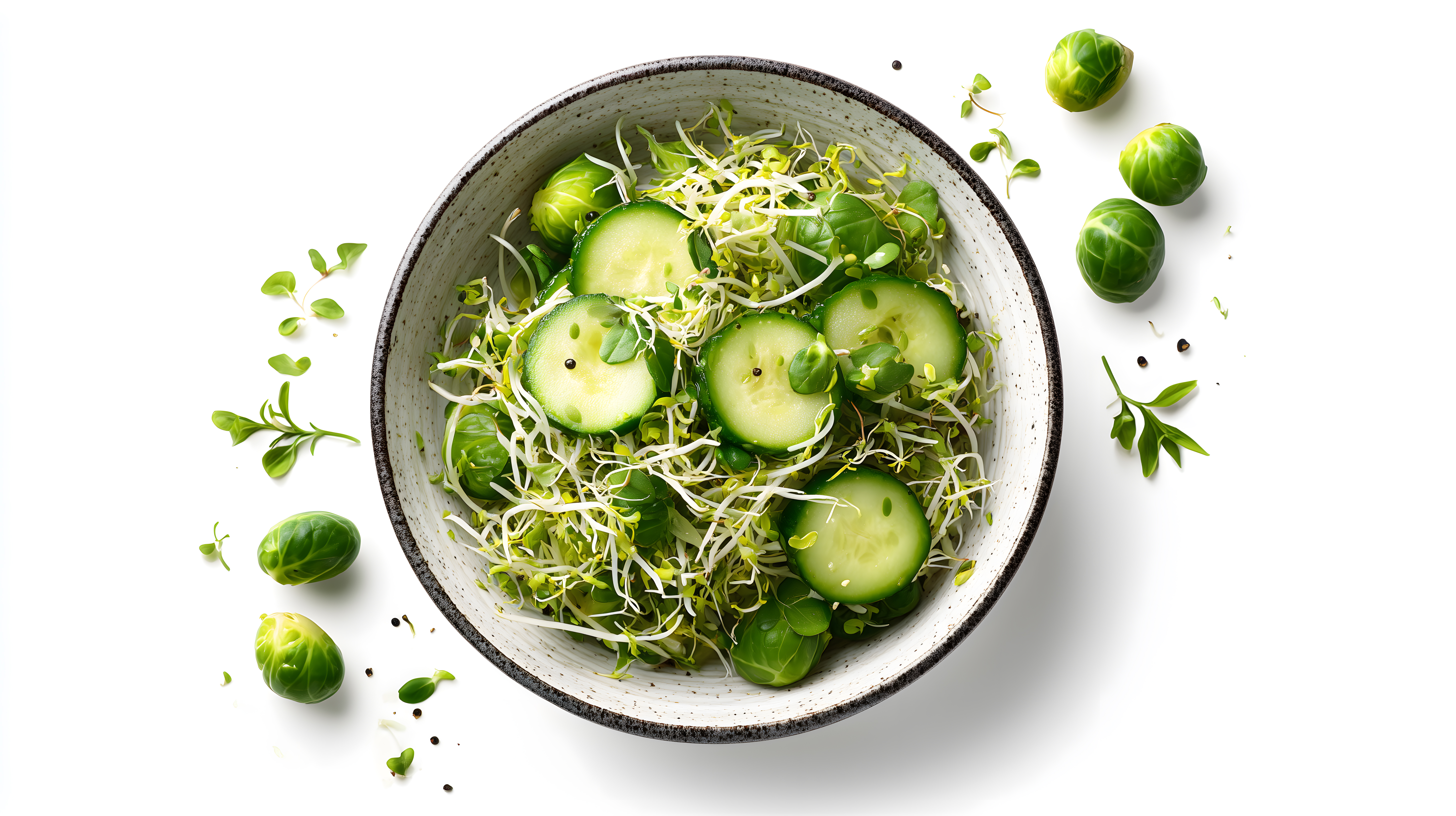 Asia Salat mit Gurke und frischen Sprossen auf weißem Hintergrund