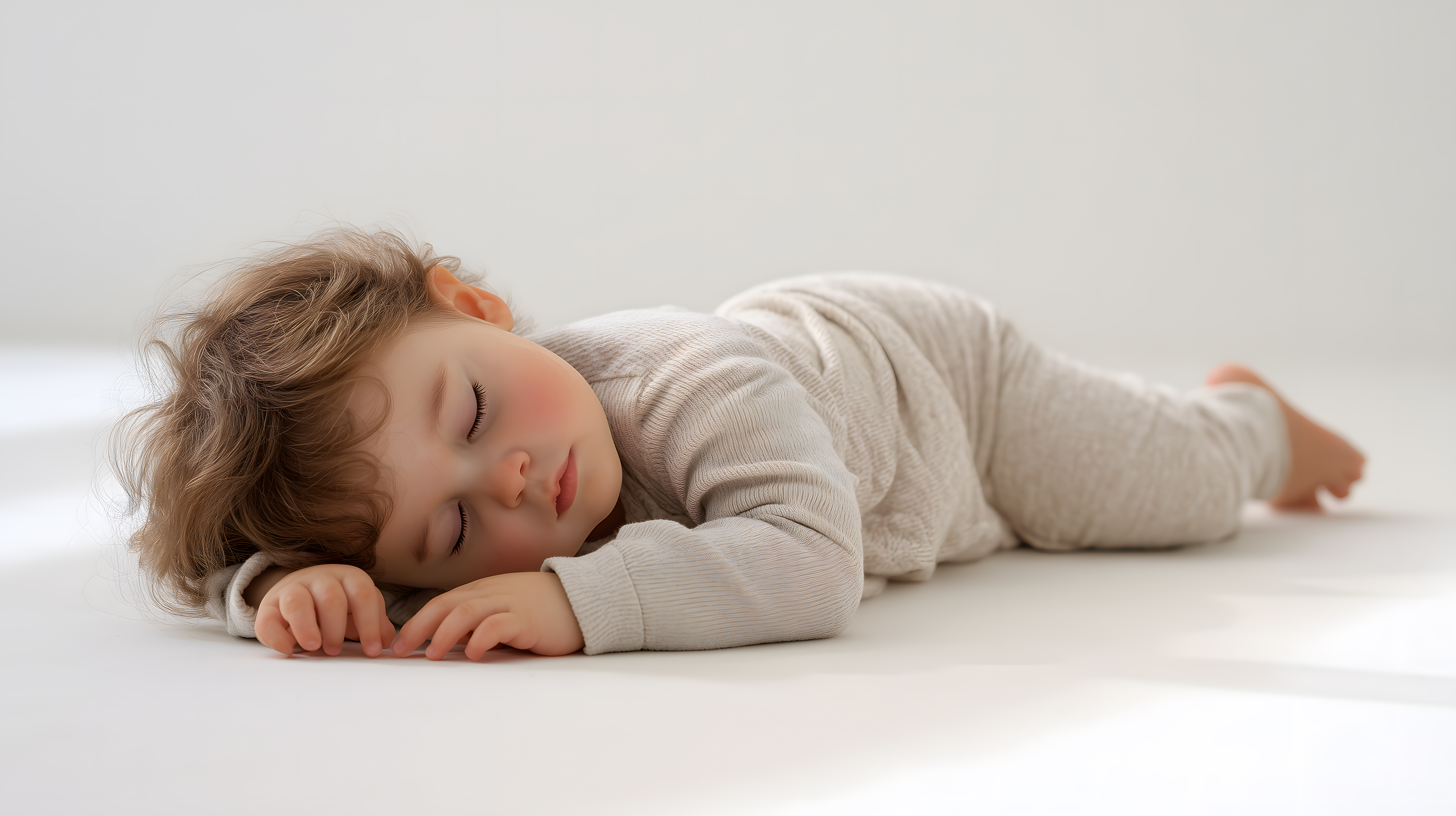 Baby schlafend seitlich liegend auf hellem Hintergrund
