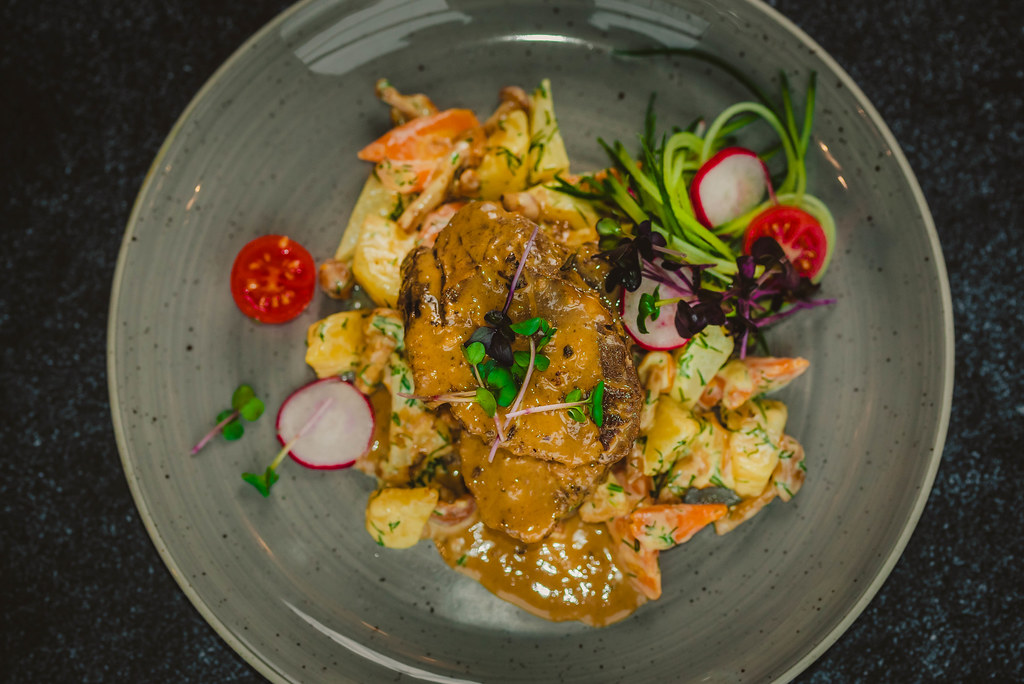 Beef steak sliced on a plate.