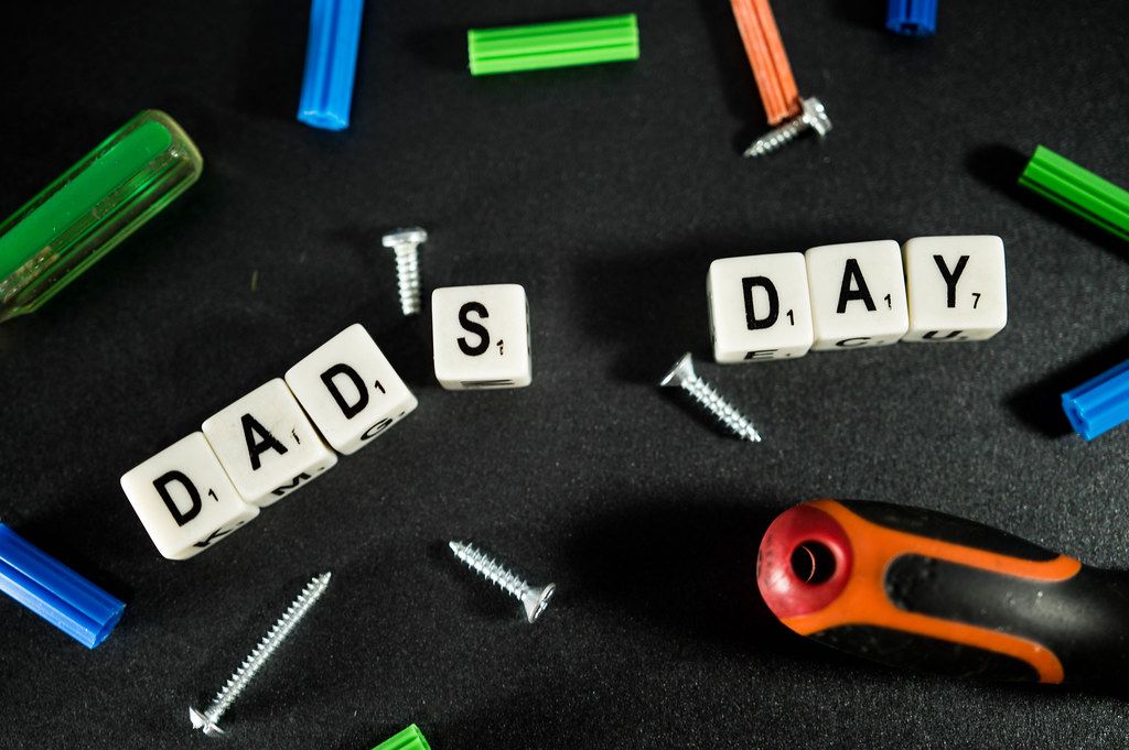 Bild zum Thema "Bald ist Vatertag", mit Werkzeug, Schrauben und Buchstabenwürfel