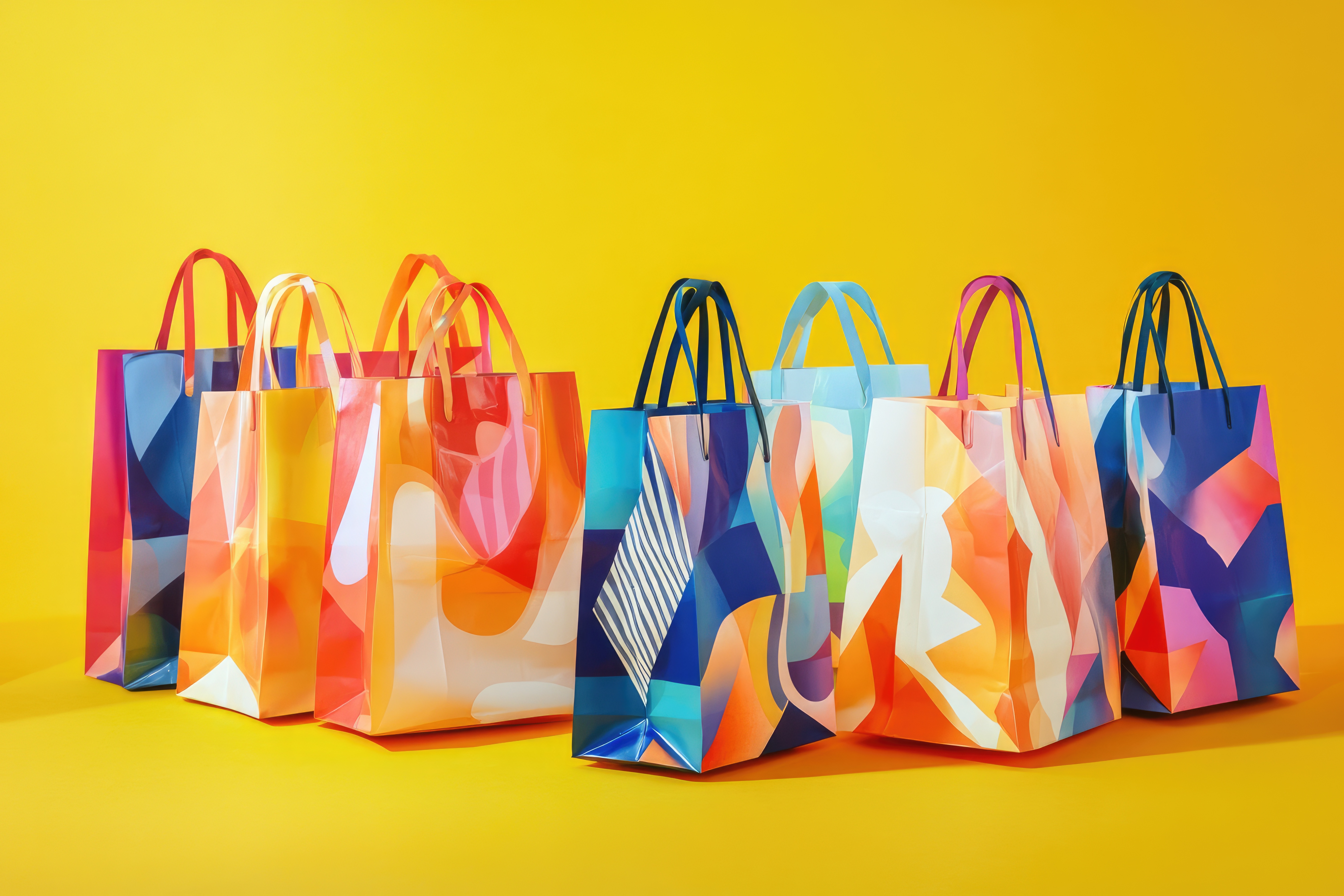 Bunte Einkaufstüten auf gelbem Hintergrund