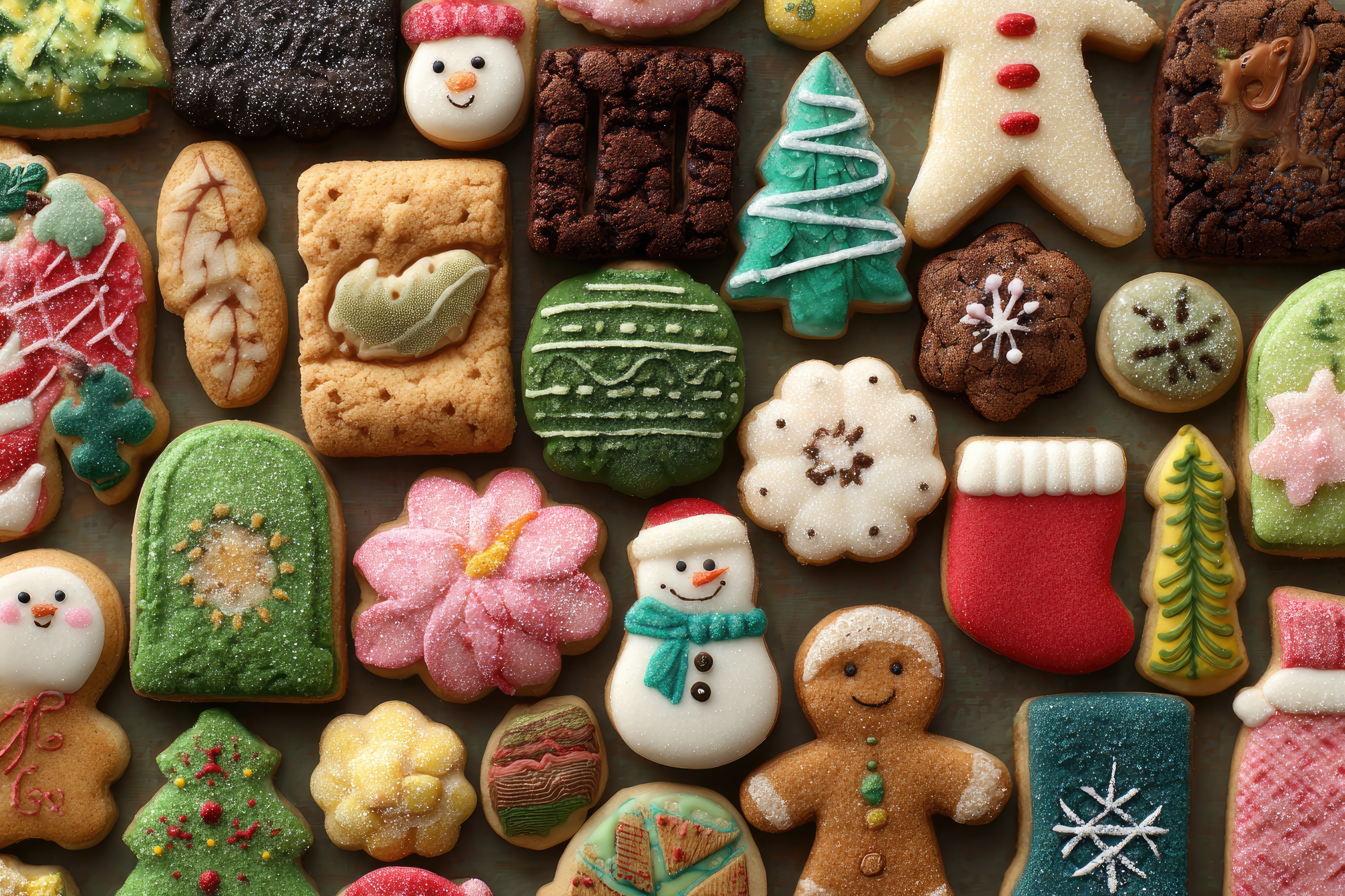 Bunte, verzierte Weihnachtsplätzchen