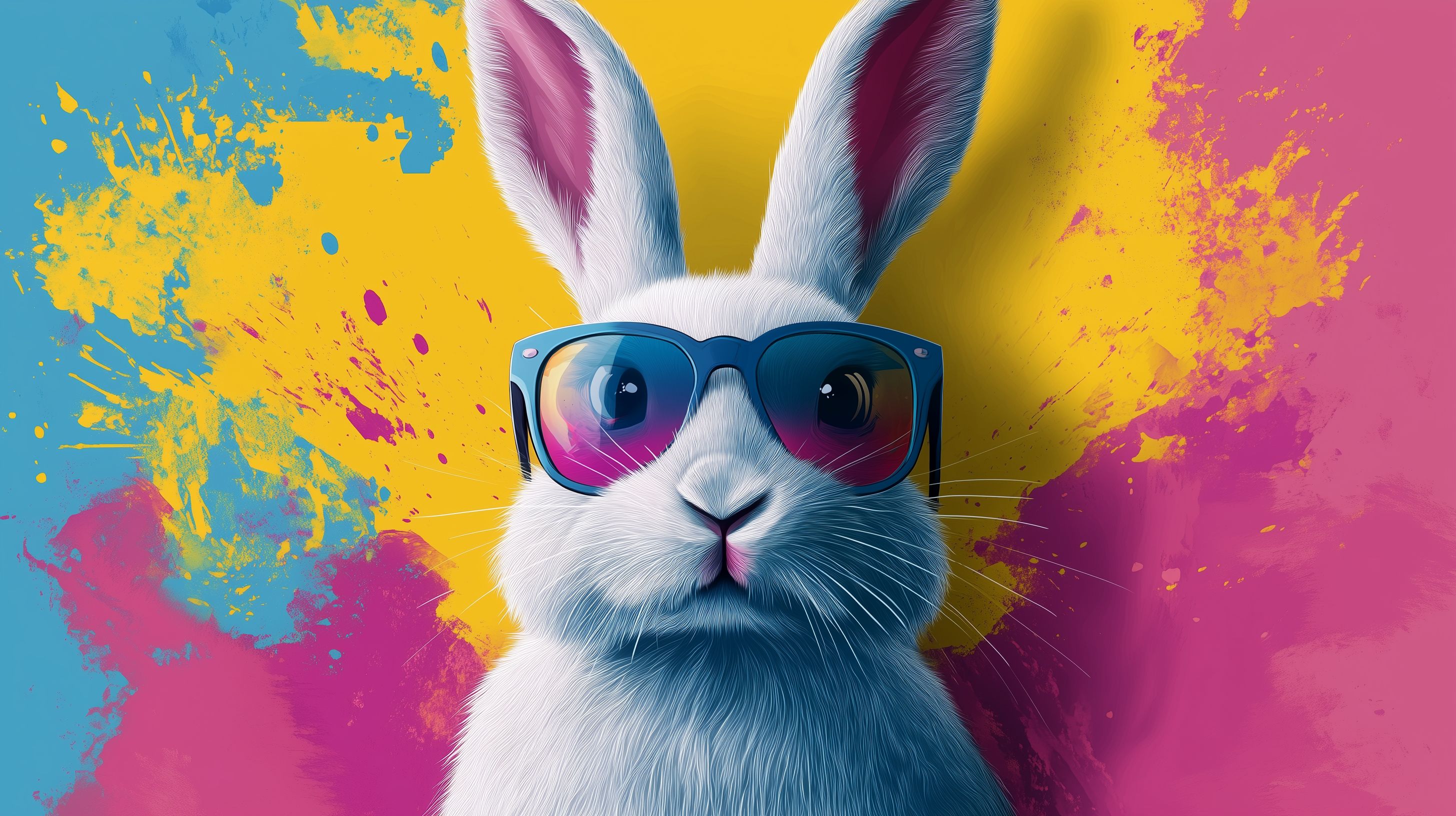 Cartoon-Hase mit Sonnenbrille vor farbenfrohem Hintergrund