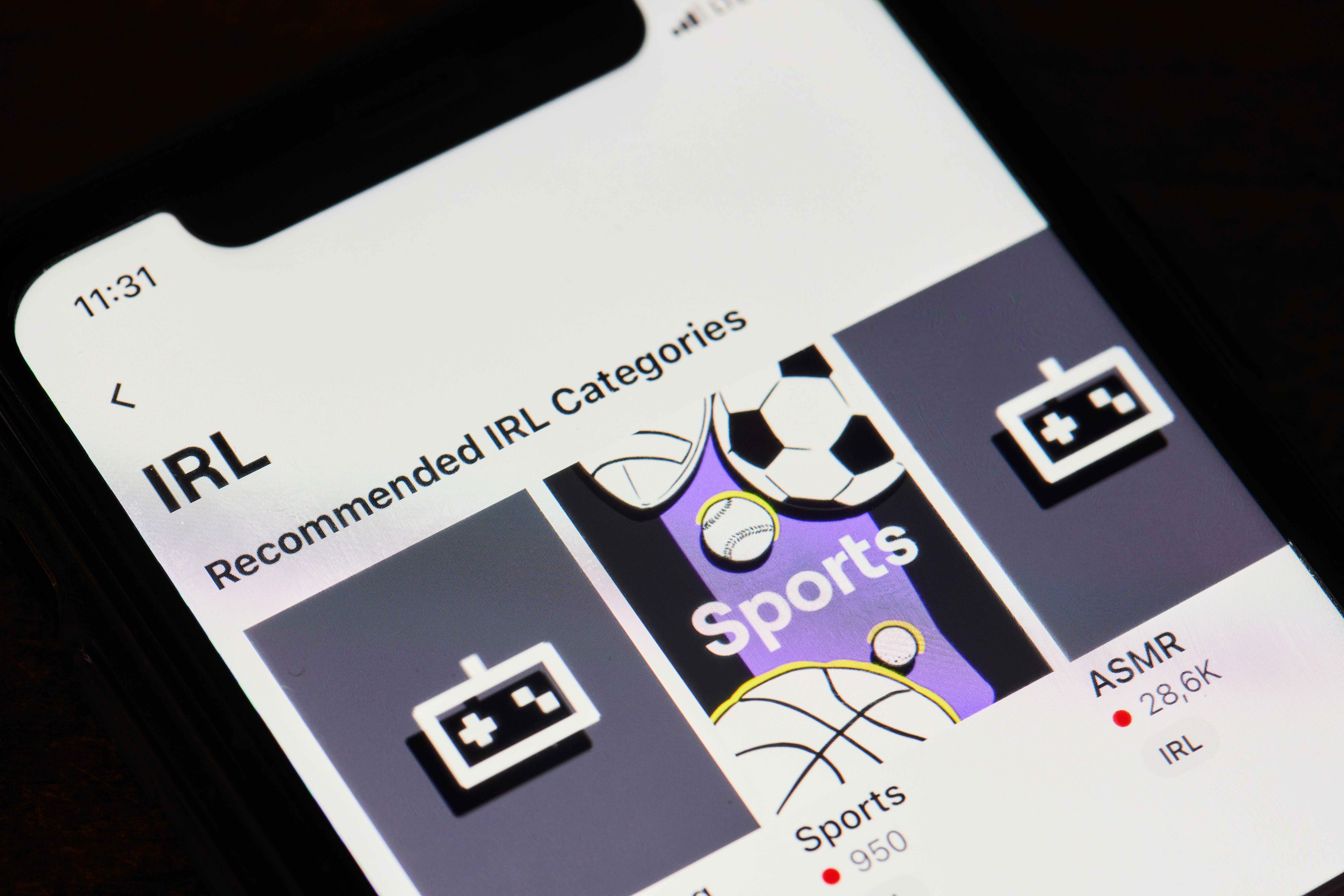 Close-up shot of a smartphone with Twitch video streaming service application on a screen