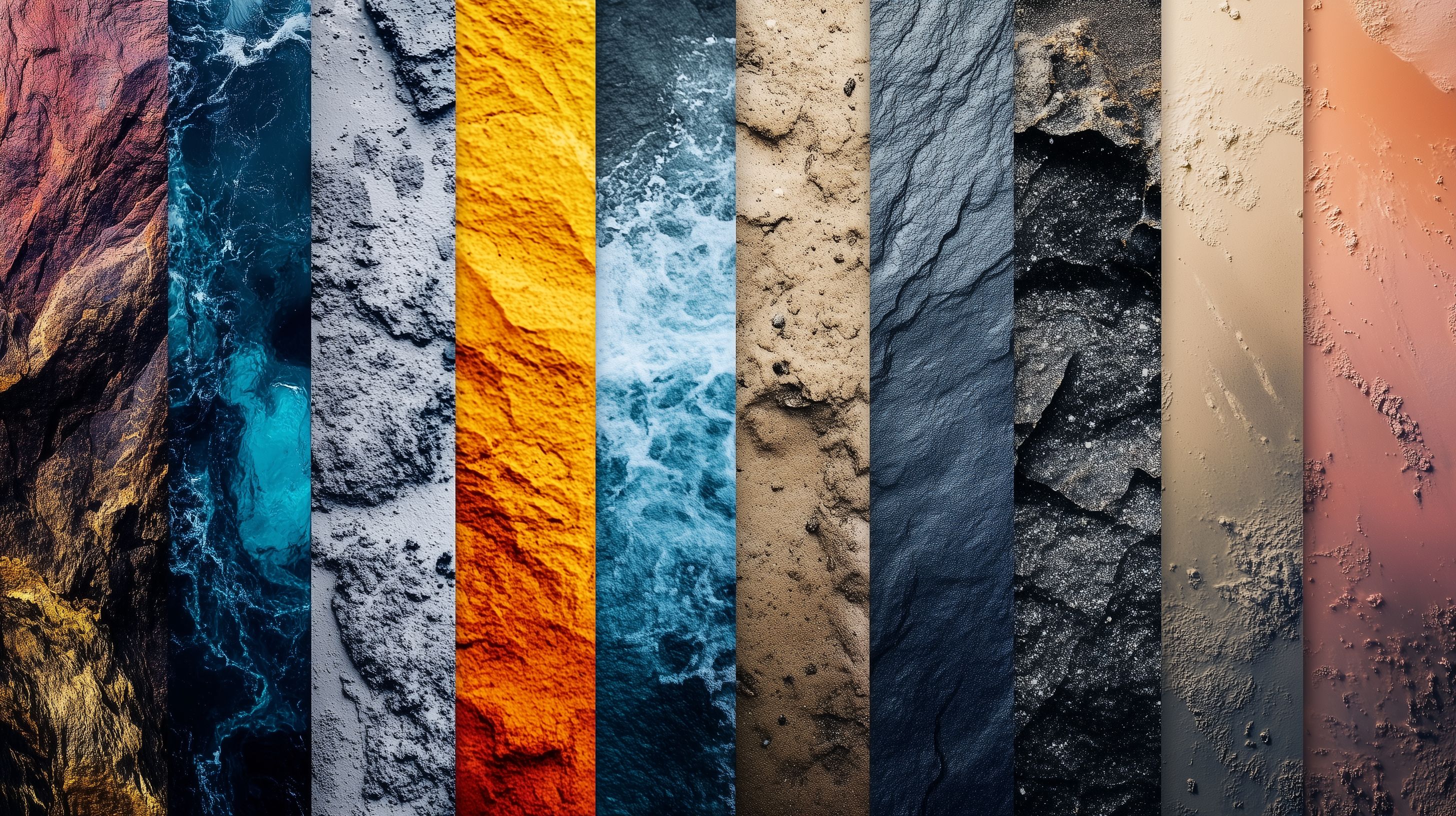 Collage von natürlichen Erdtexturen, Elementen und Farben