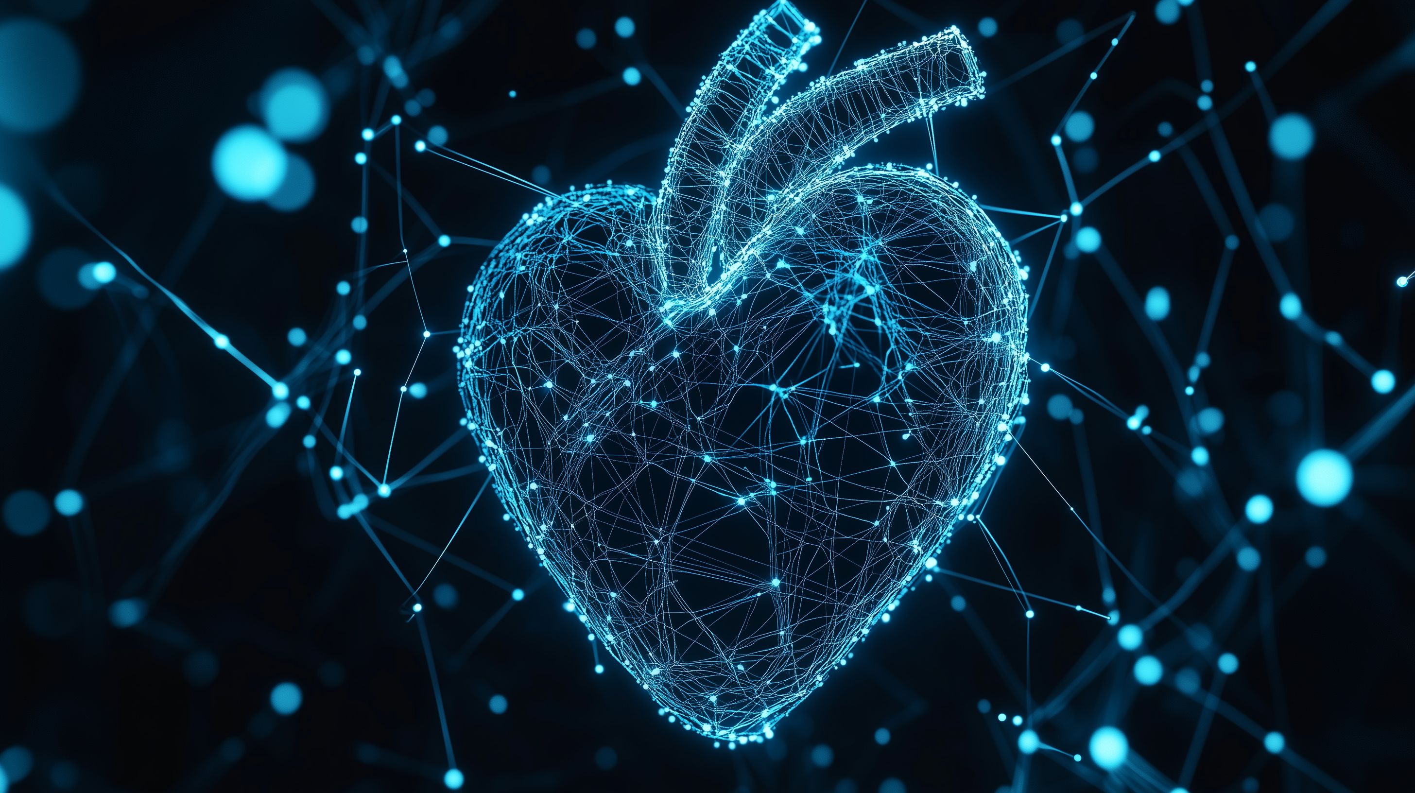 Digitales Herz aus leuchtenden blauen Linien und Punkten