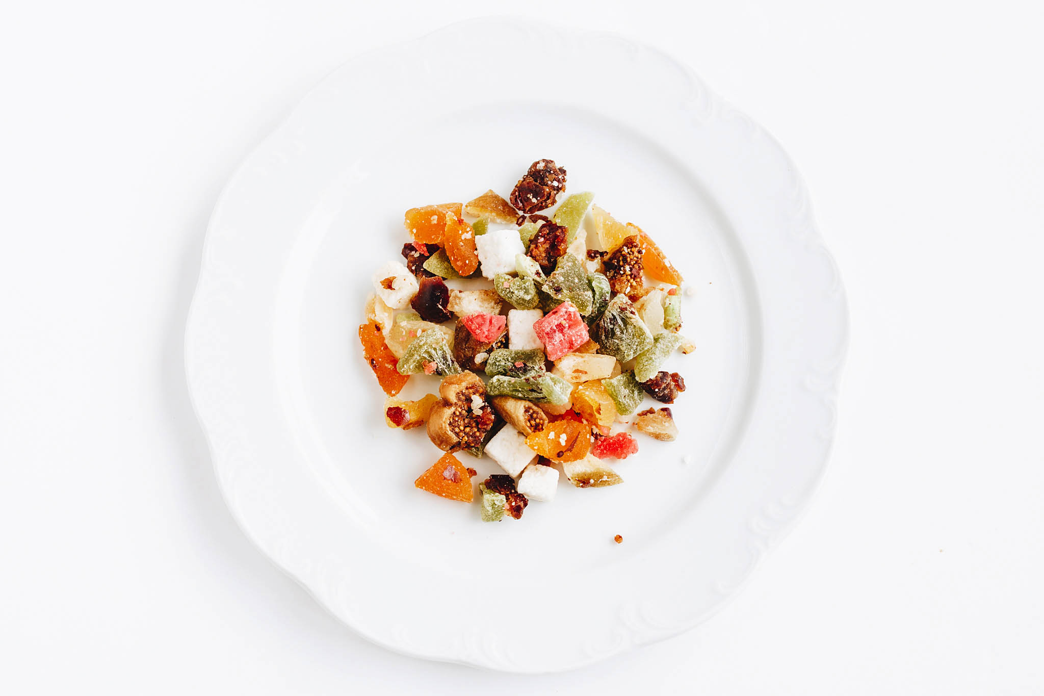Draufsicht verschiedener Arten von Trockenfrüchten