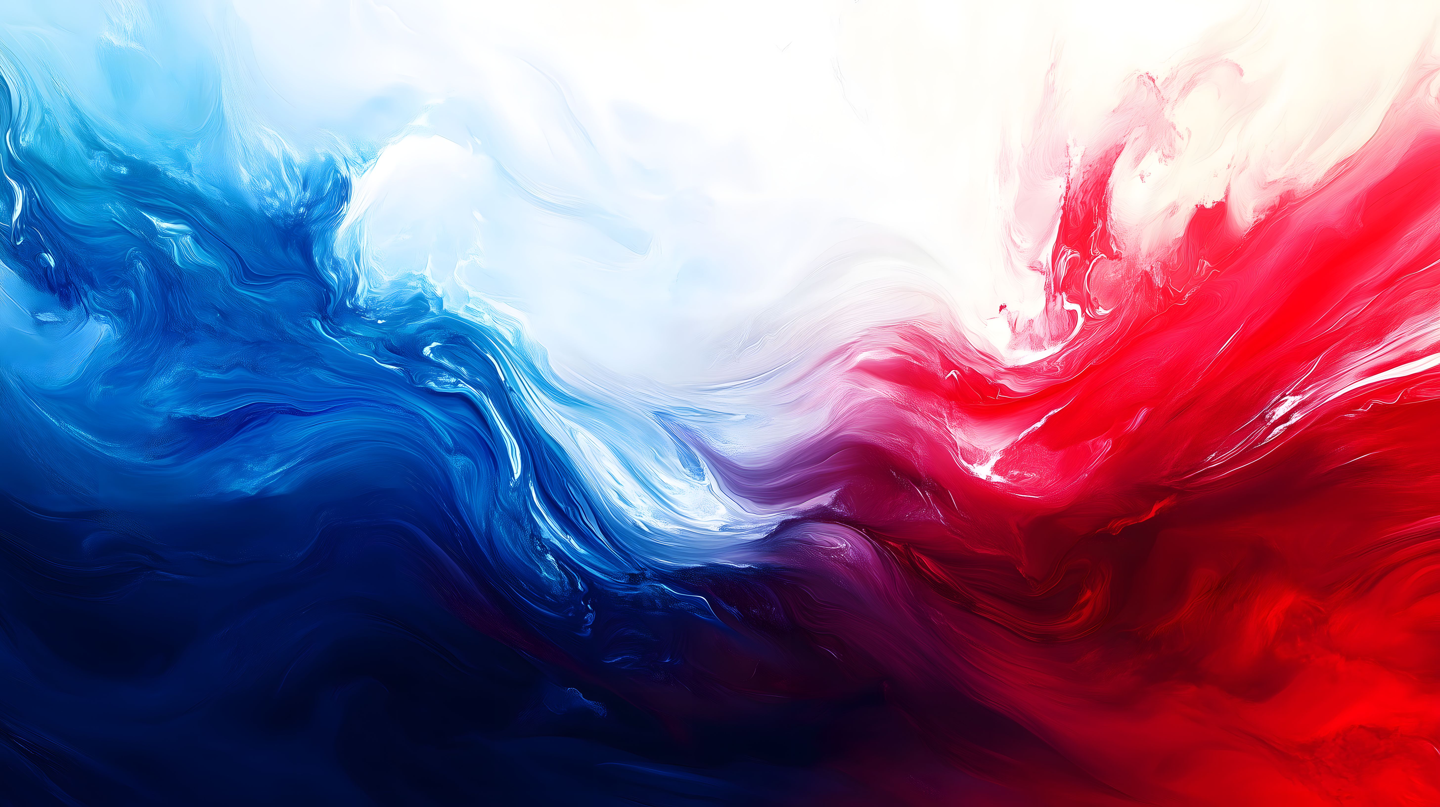 Dynamische Farbspritzer in Rot, Weiß und Blau: Farben von Frankreich