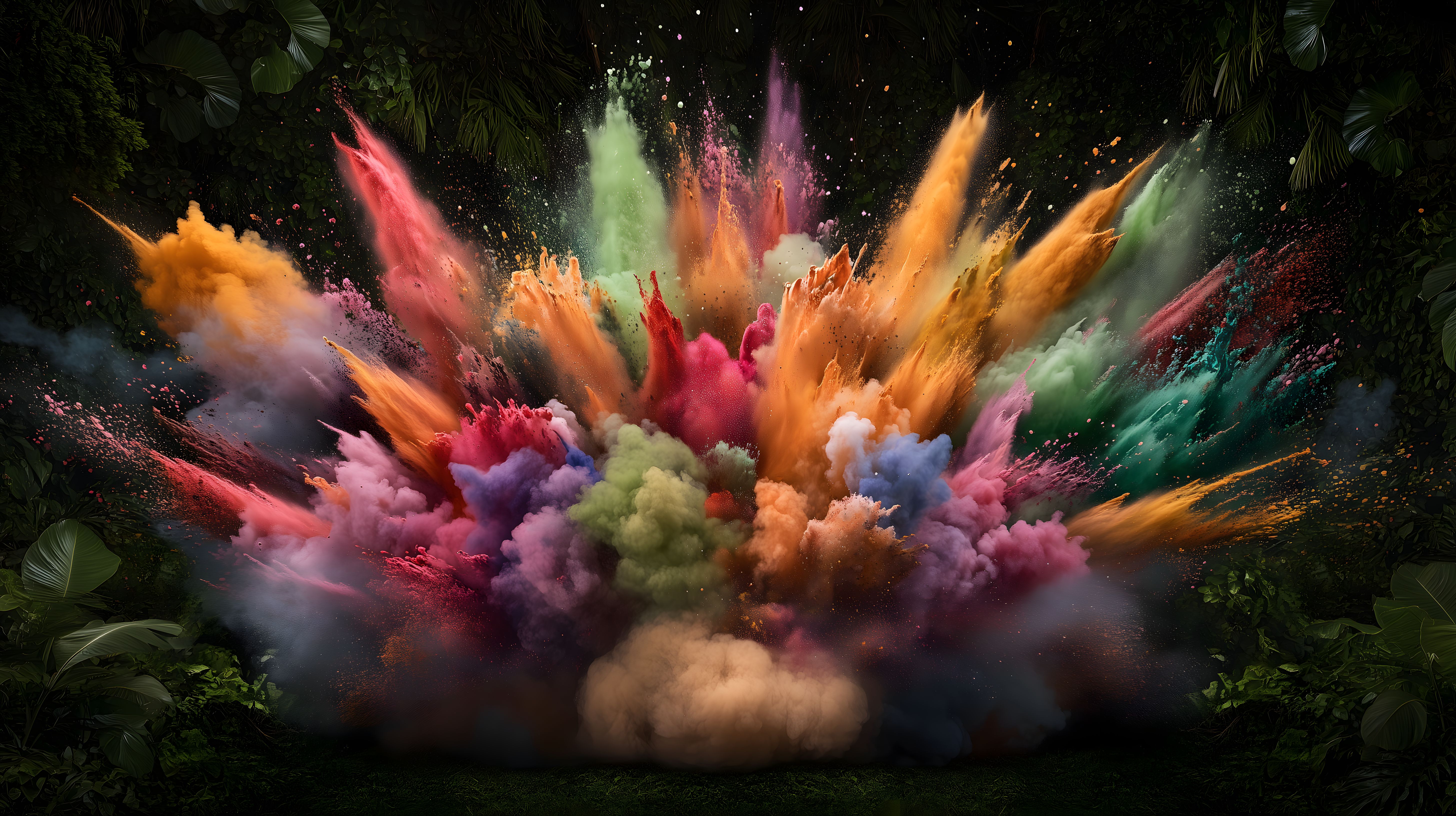 Farbenexplosion in tropischer Umgebung mit lebendiger Energie und Kreativität