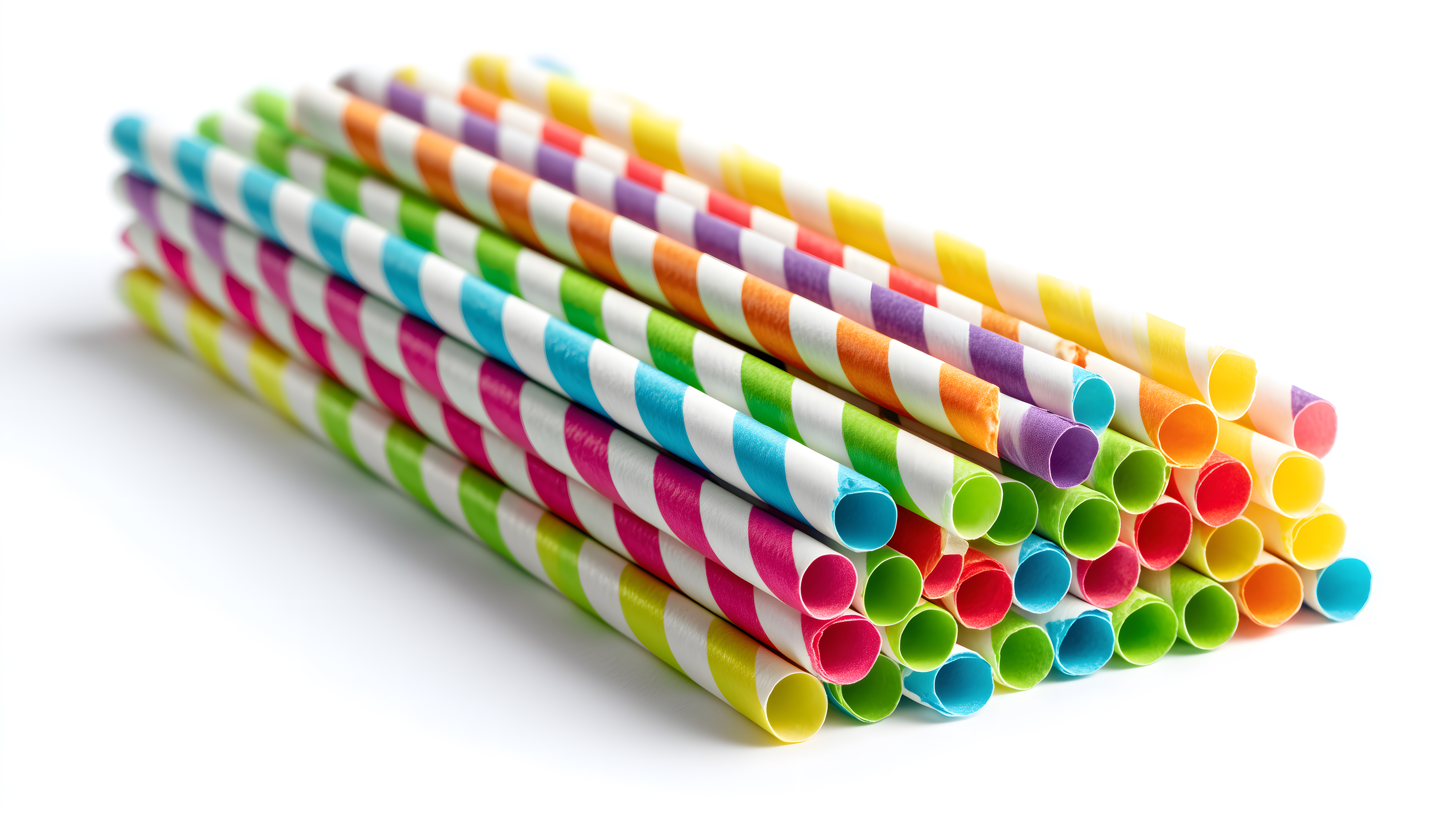 Farbige gestreifte Papierstrohhalme aus mehreren Winkeln