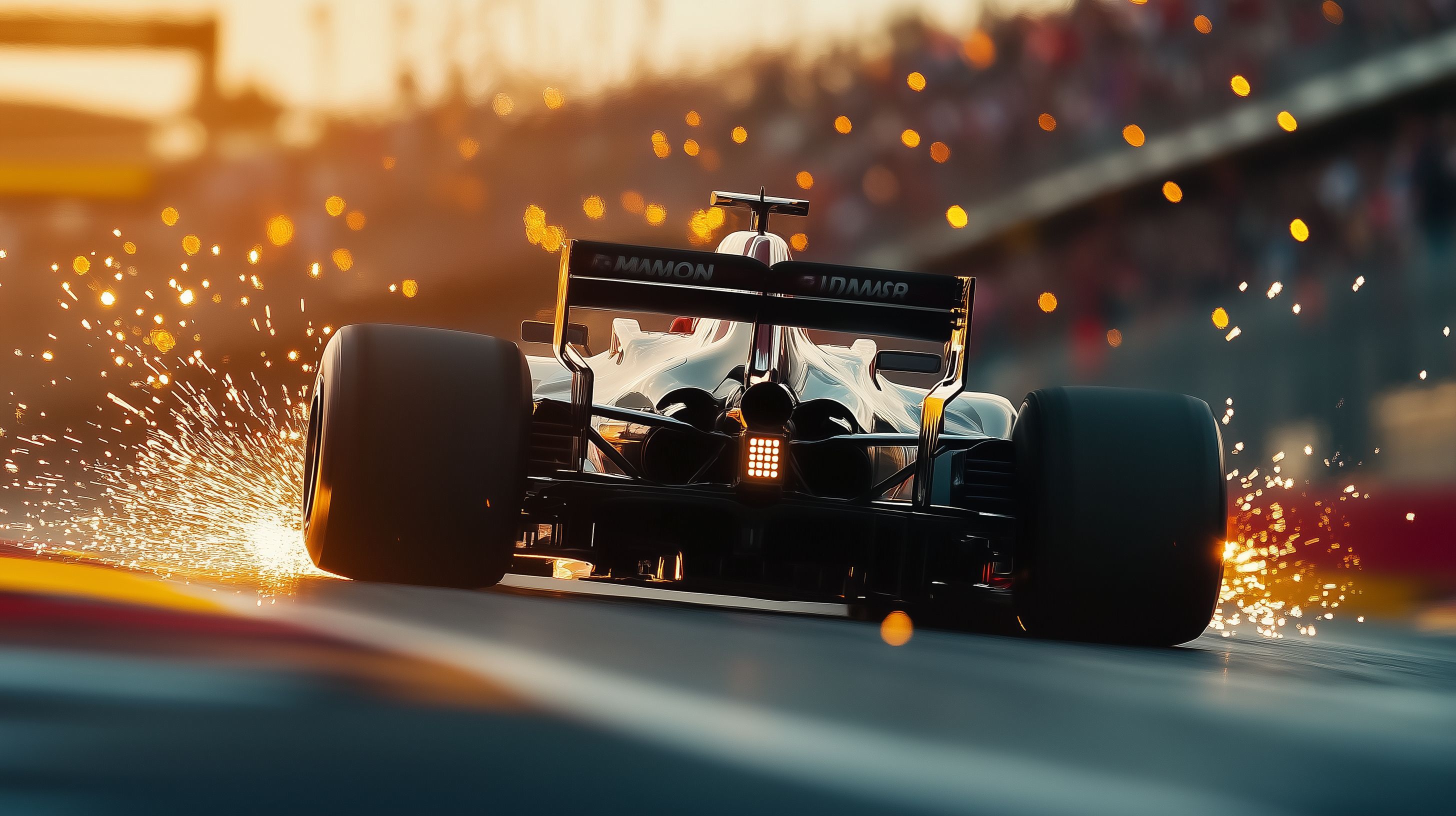 Formel-1-Auto bei scharfer Kurve auf Rennstrecke