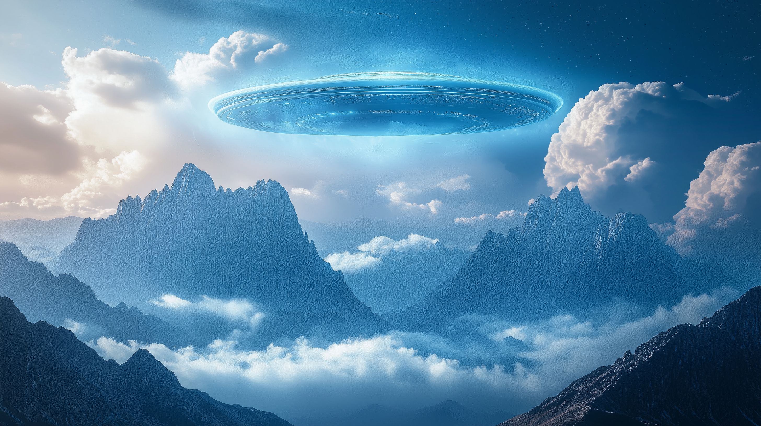 Futuristisches Raumschiff schwebt über den Wolken