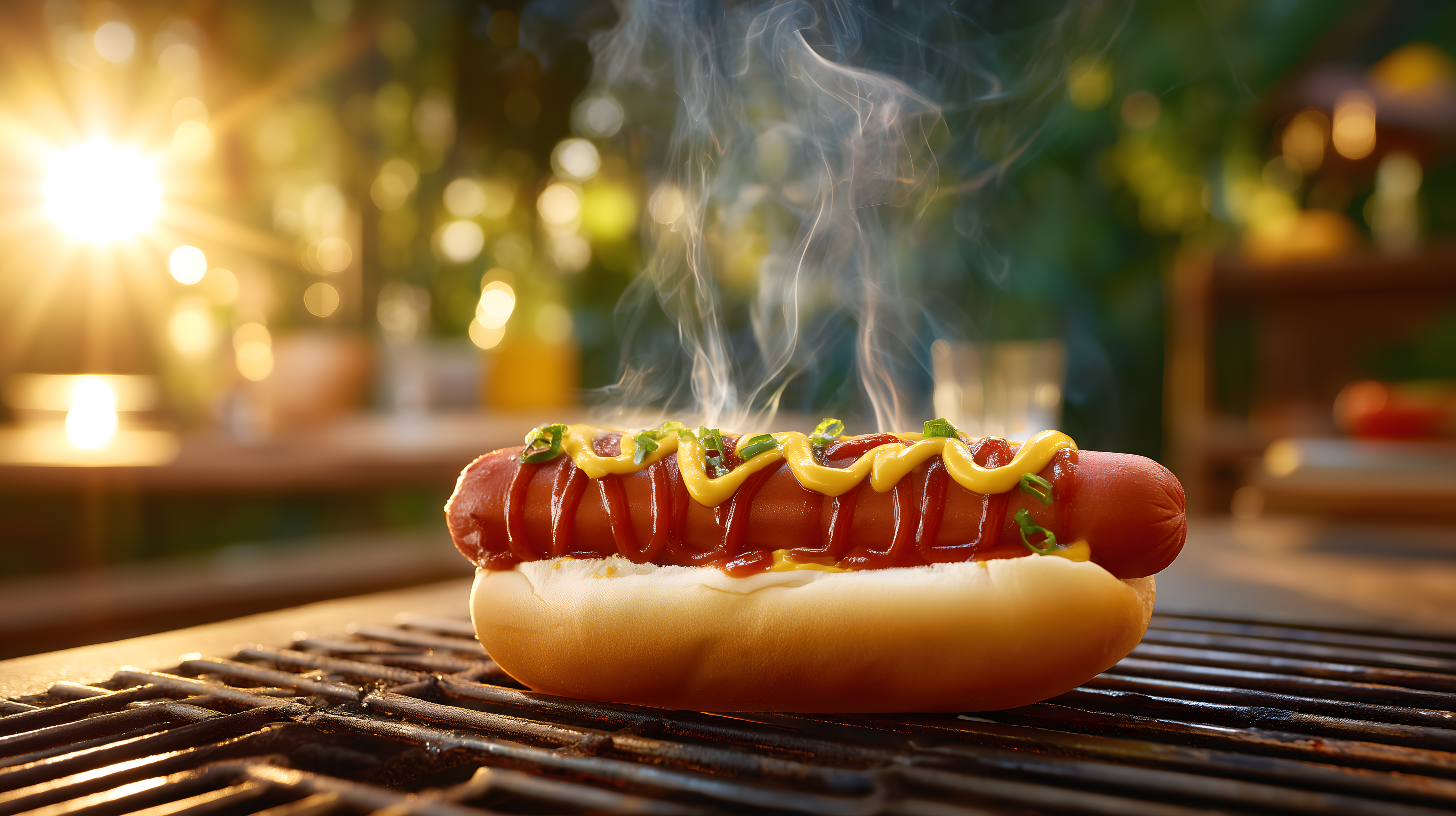 Gegrillter Hotdog mit Senf auf Sommergrill
