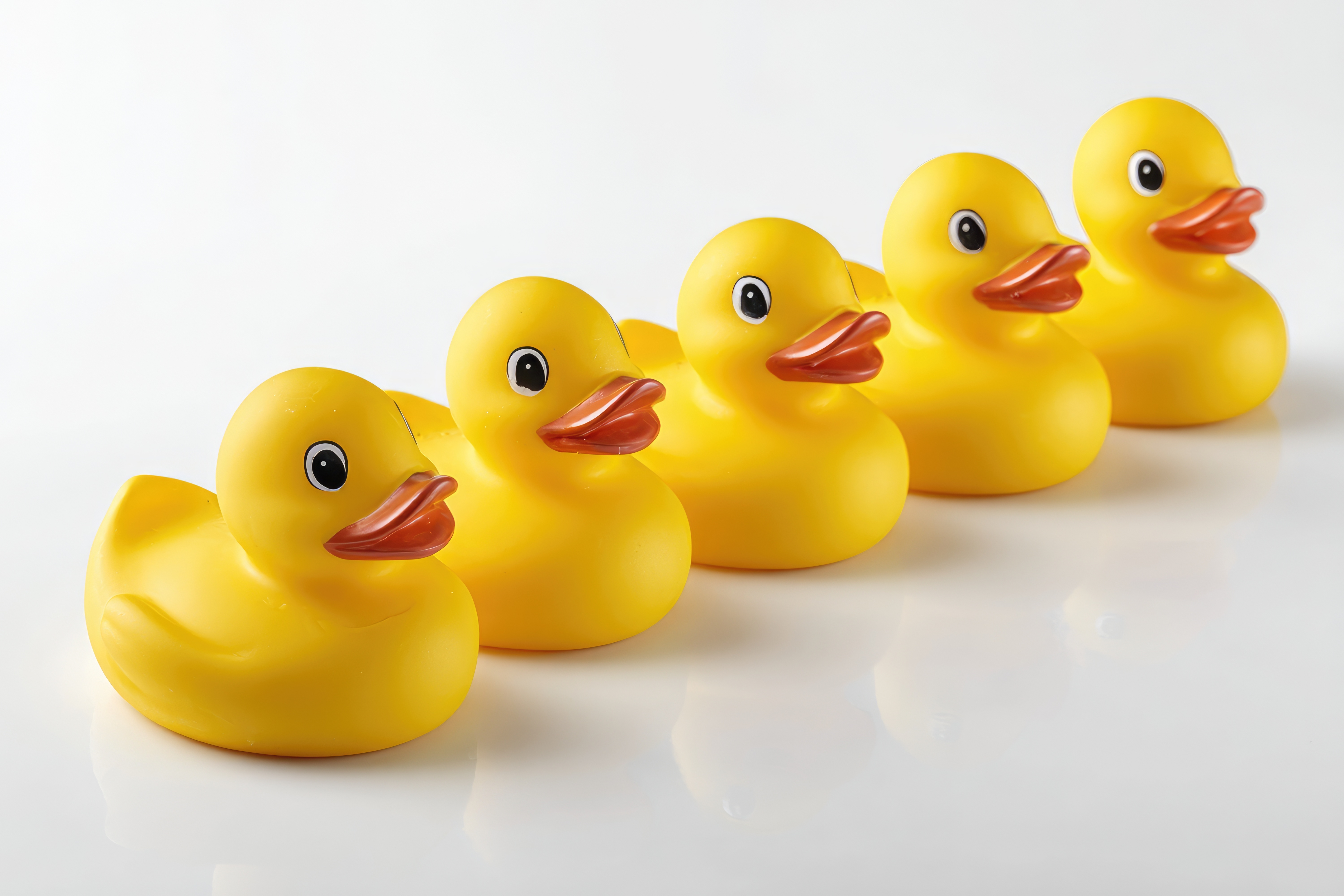 Gelbe Gummienten in Reih und Glied