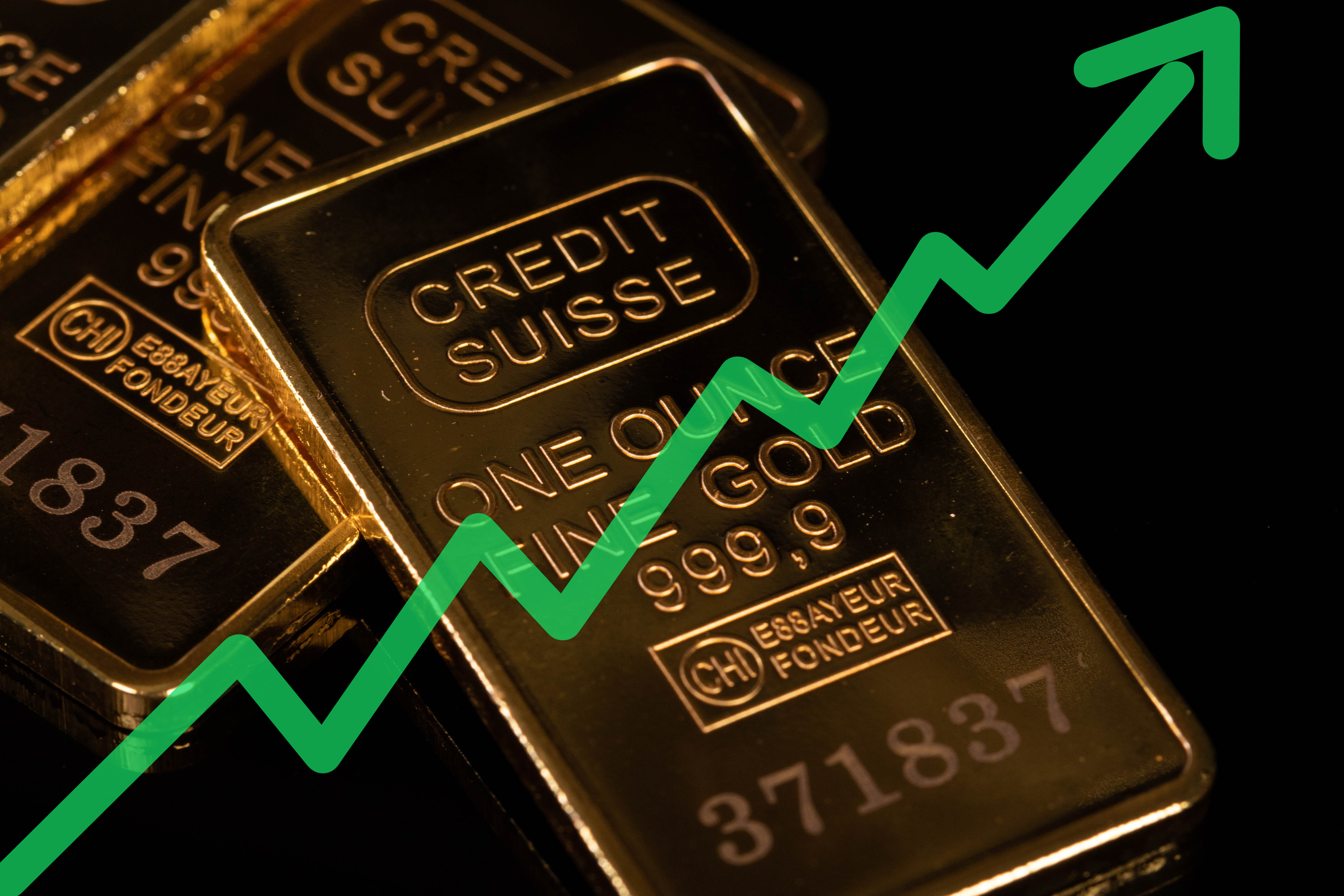 Gold bars with green arrow