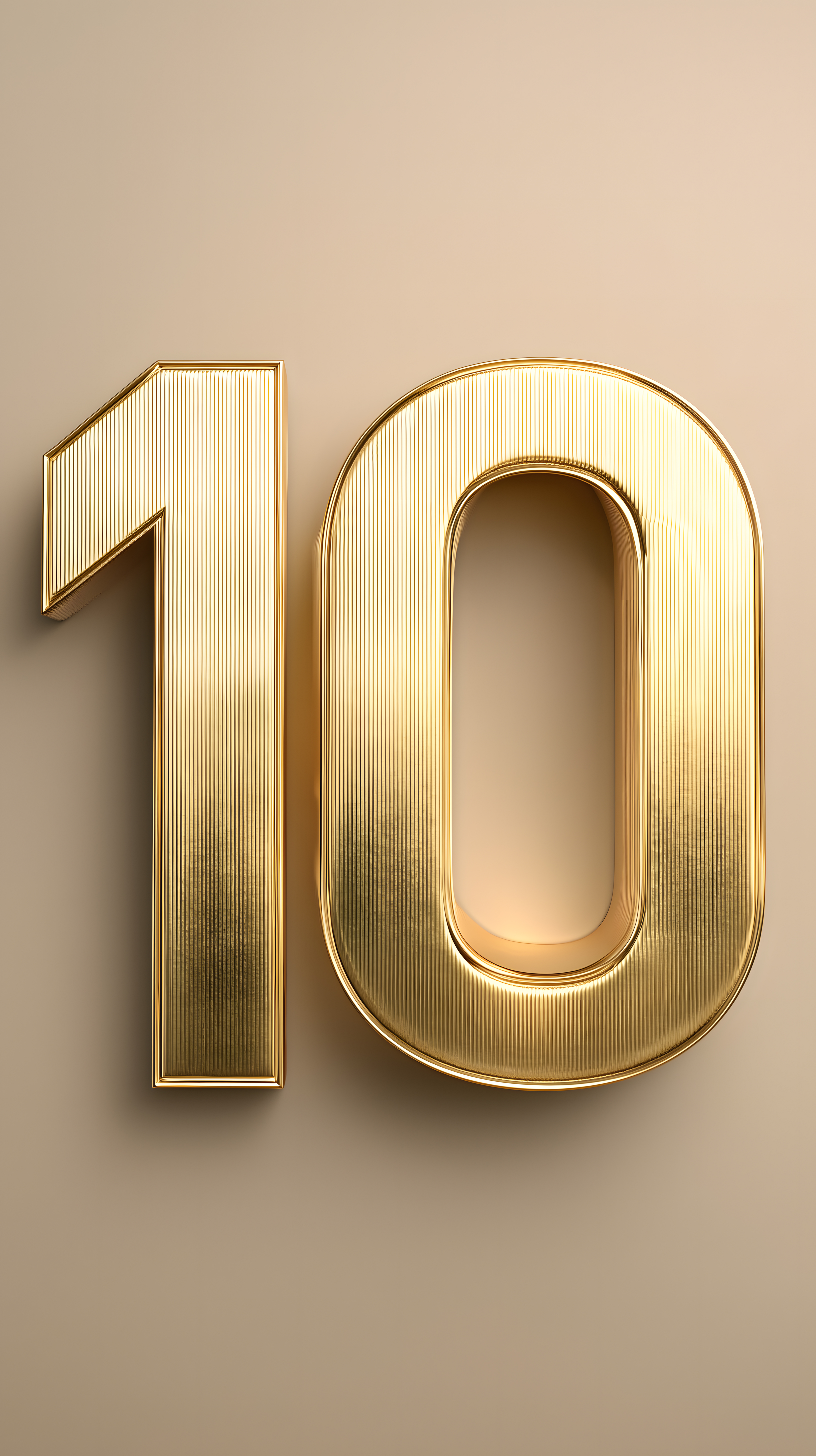 Goldene Zahl 10 mit gerillter Oberfläche auf beigem Hintergrund