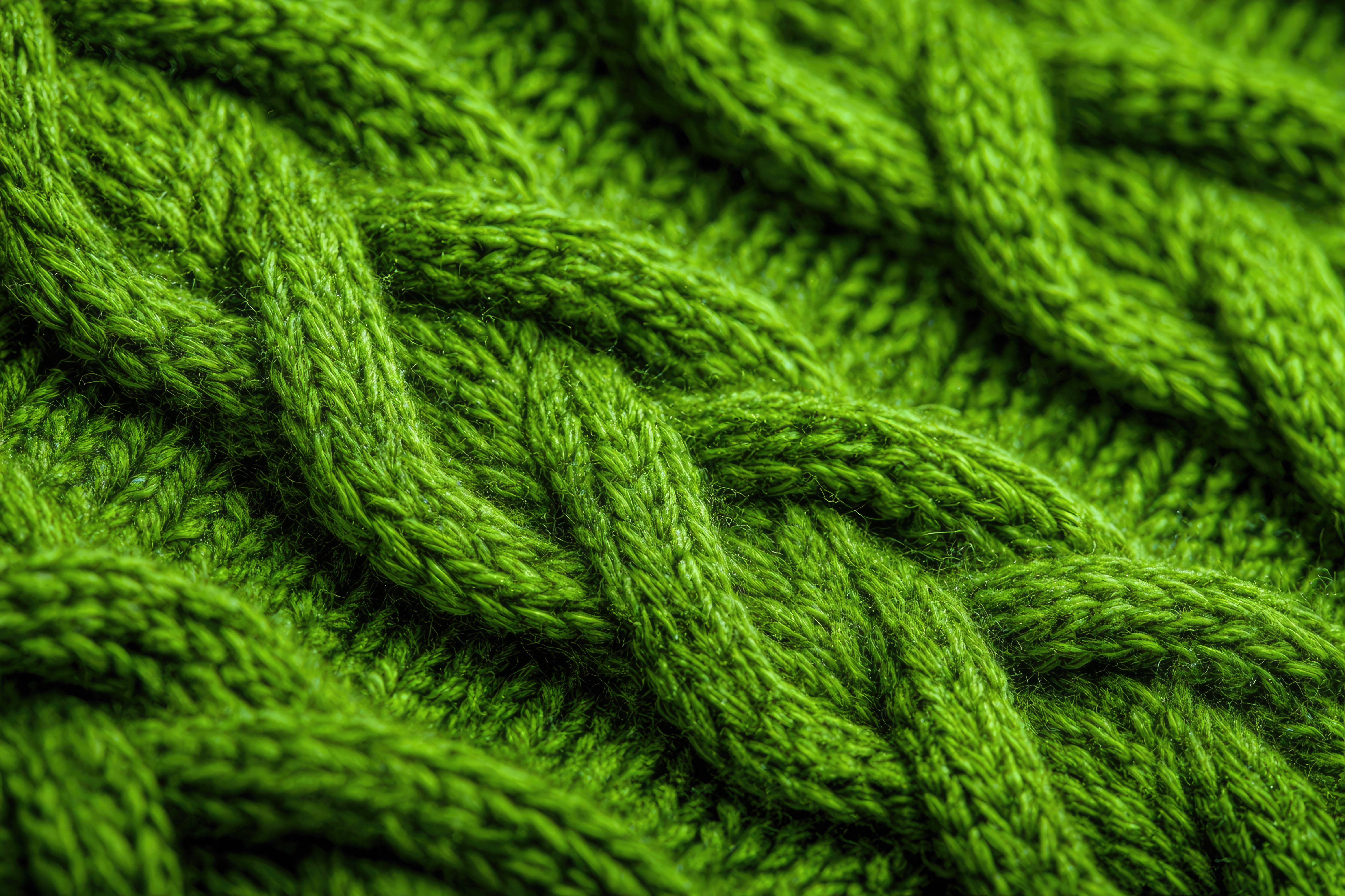 Grüne Stricktextur in Nahaufnahme