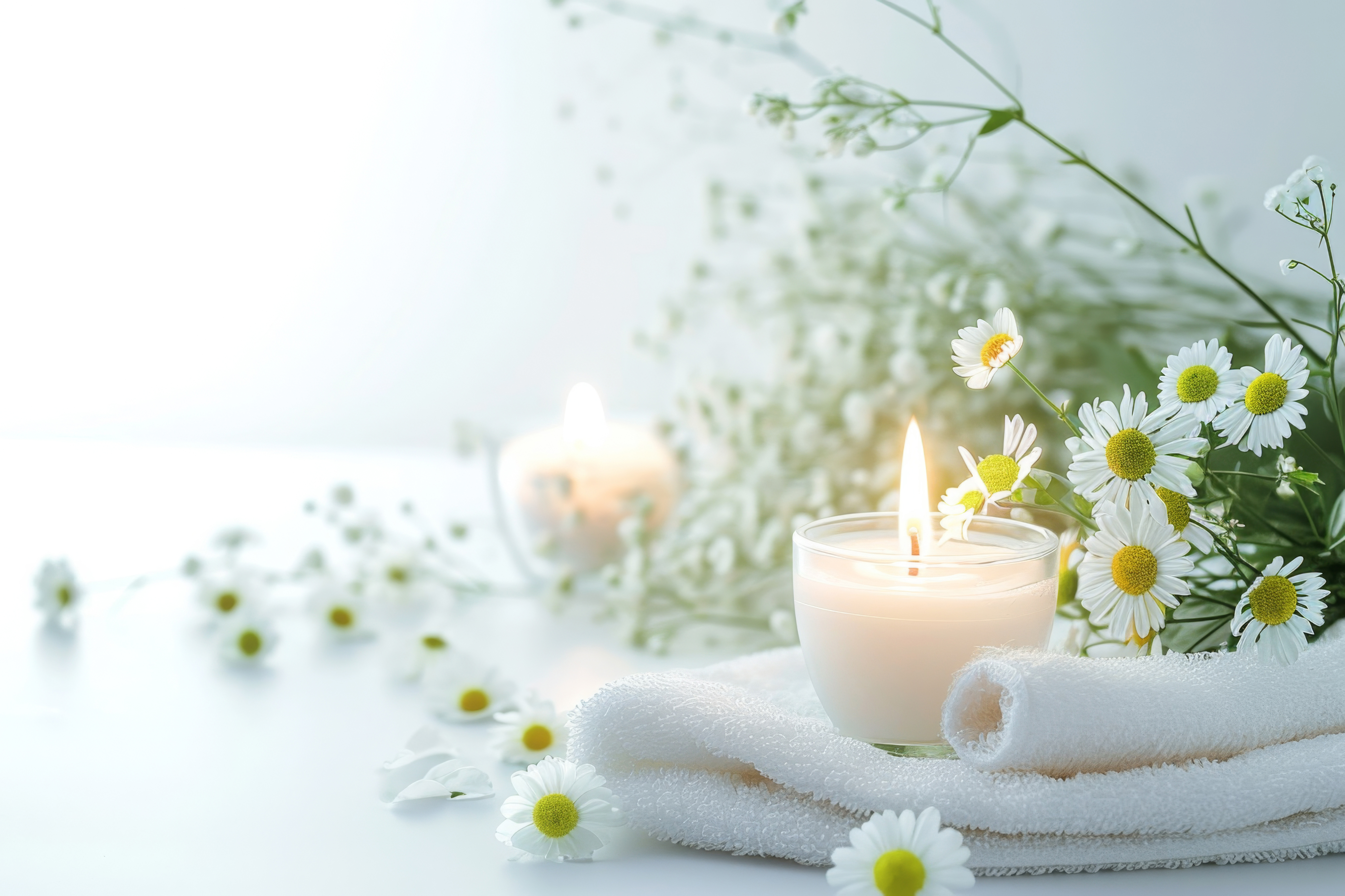 Handtuch mit Gänseblümchen und Kerzen