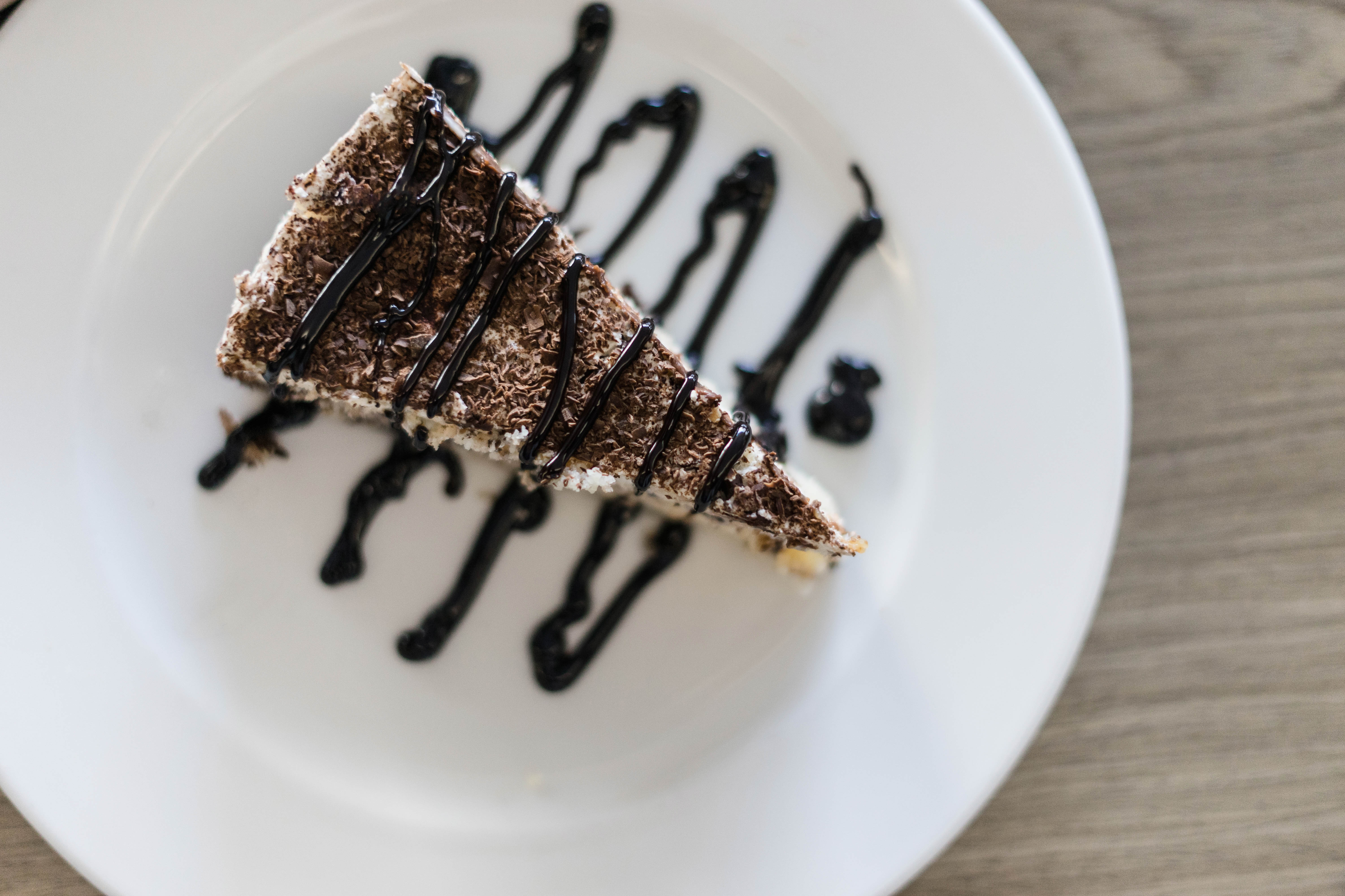 High Angle View on the Stracciatella Chocolate Cake in a Plate