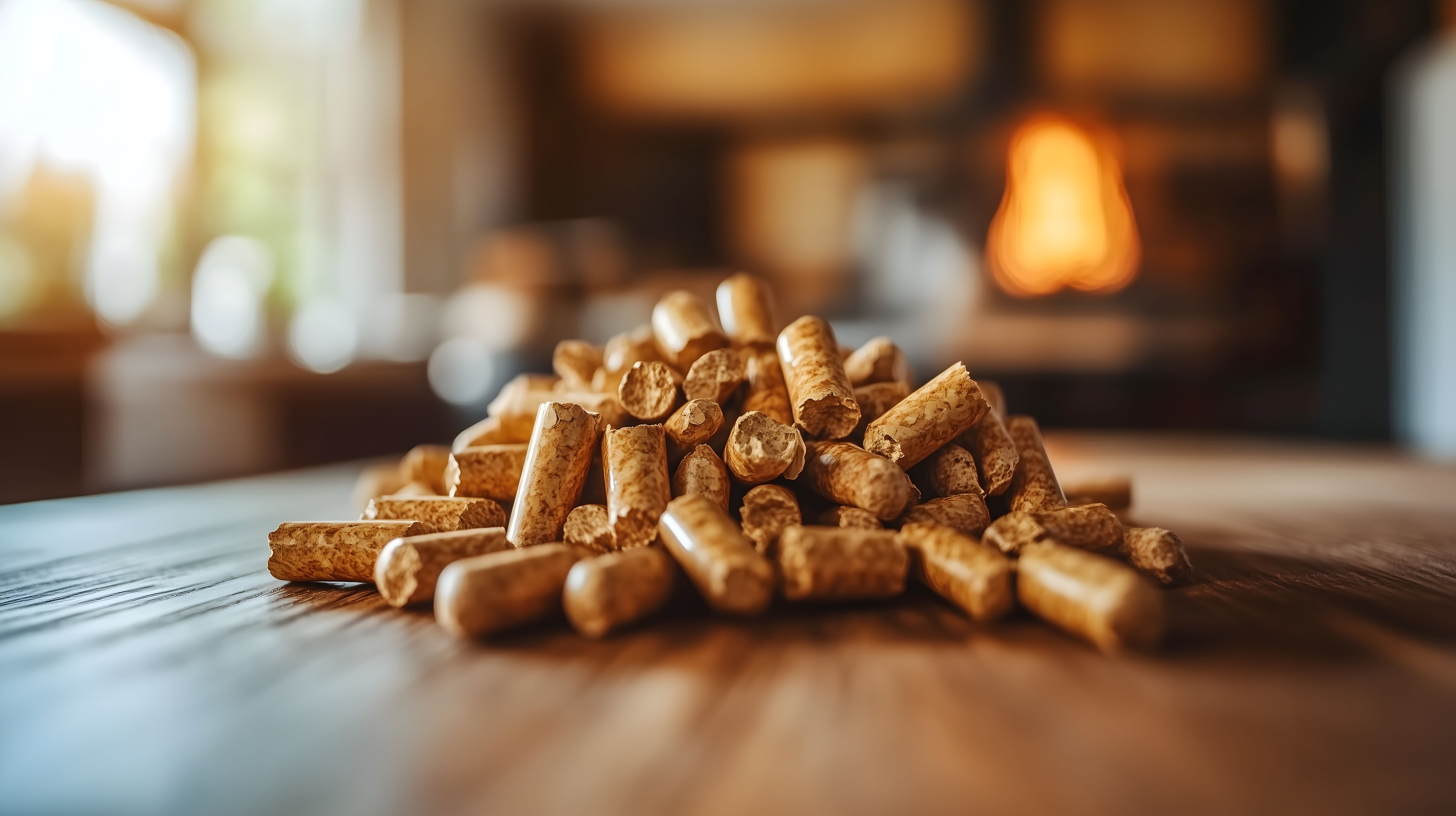 Holzpellets auf einem Tisch: eine nachhaltige Brennstoffquelle