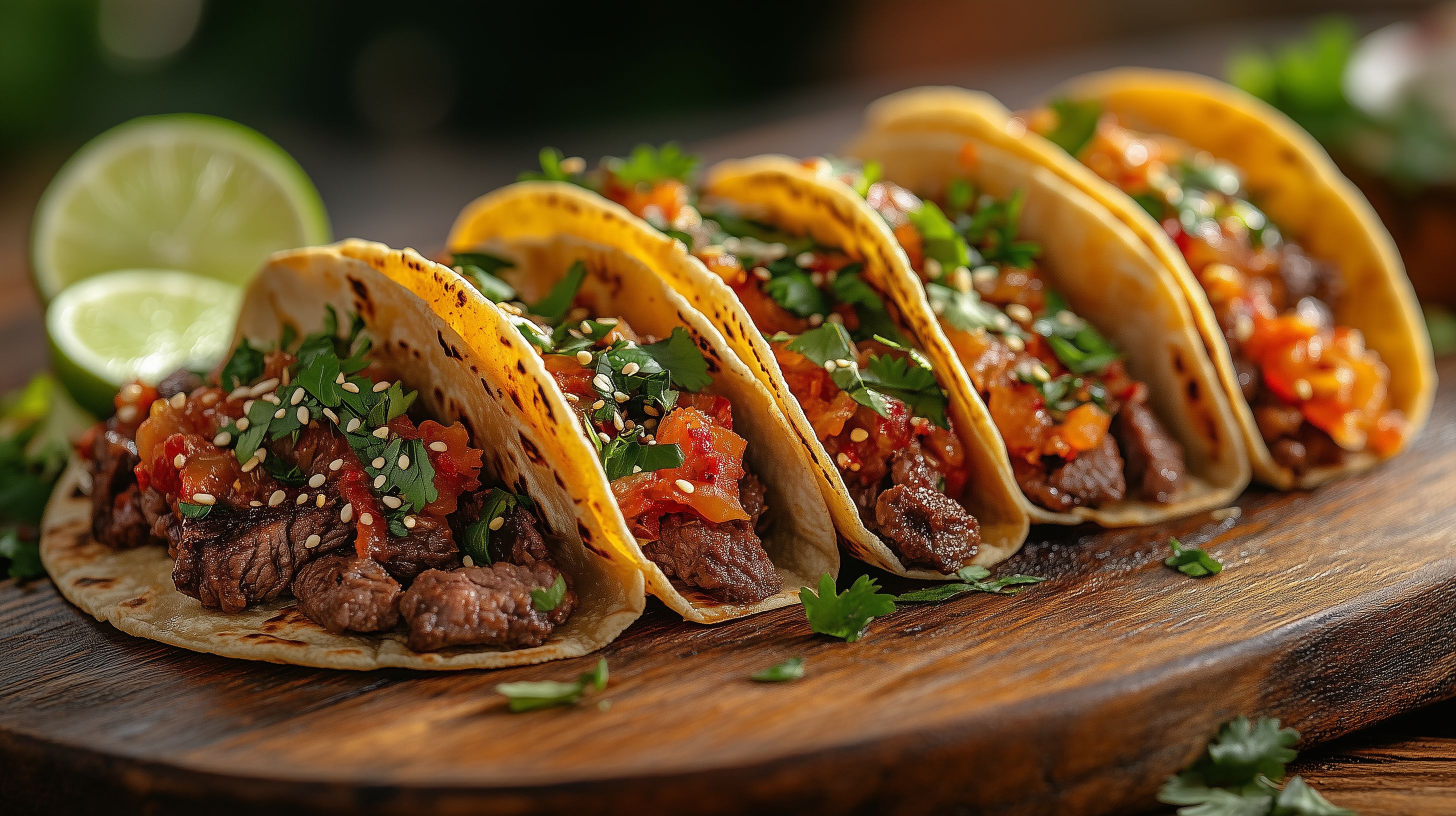 Koreanische Bulgogi-Tacos mit scharfer Salsa und Limette