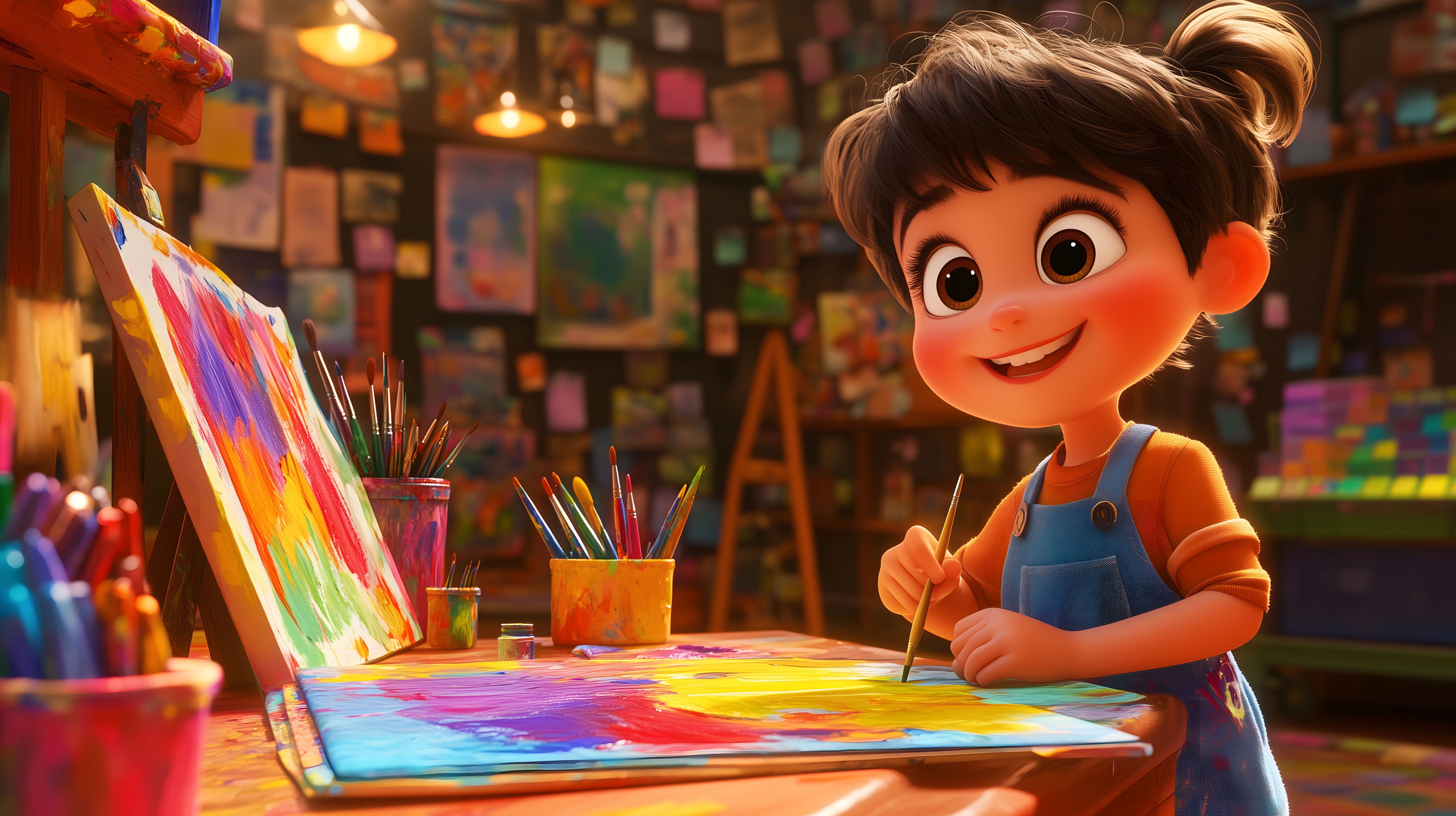 Kreatives Kind beim Malen und Zeichnen an einem Kunststand