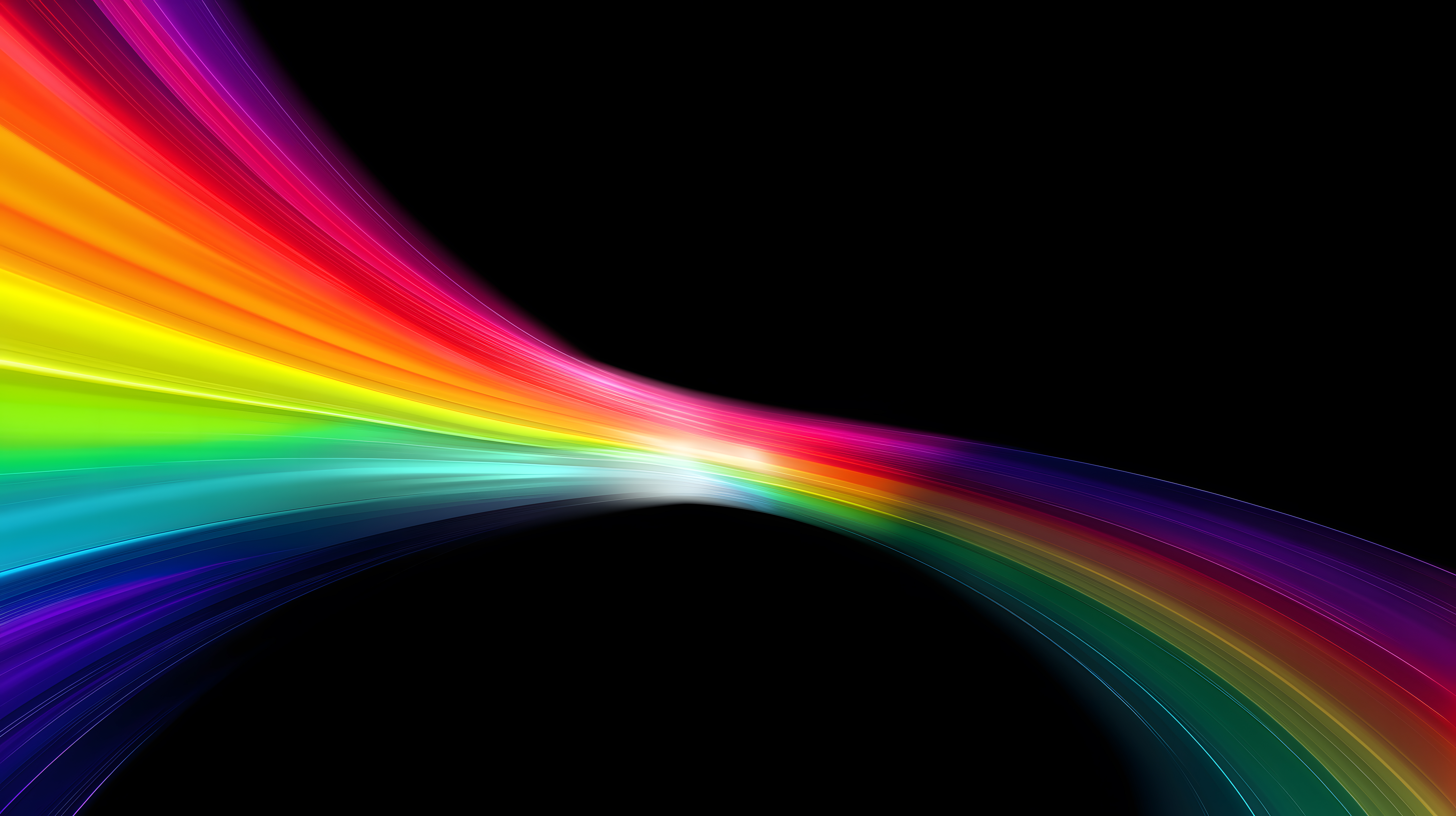 Leuchtender Farbregenbogen mit Lichtkurve vor schwarzem Hintergrund