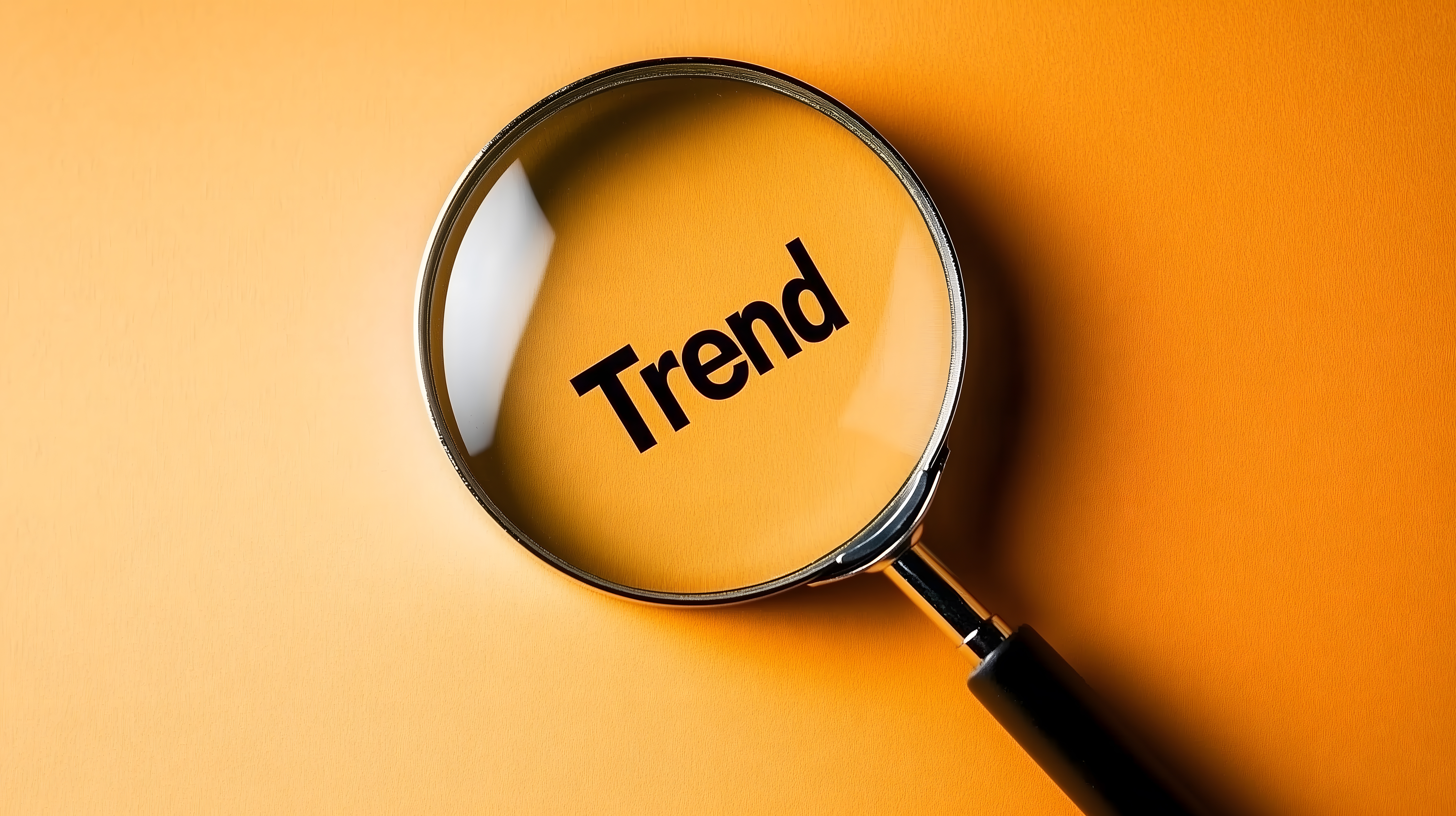 Lupe fokussiert auf das Wort Trend