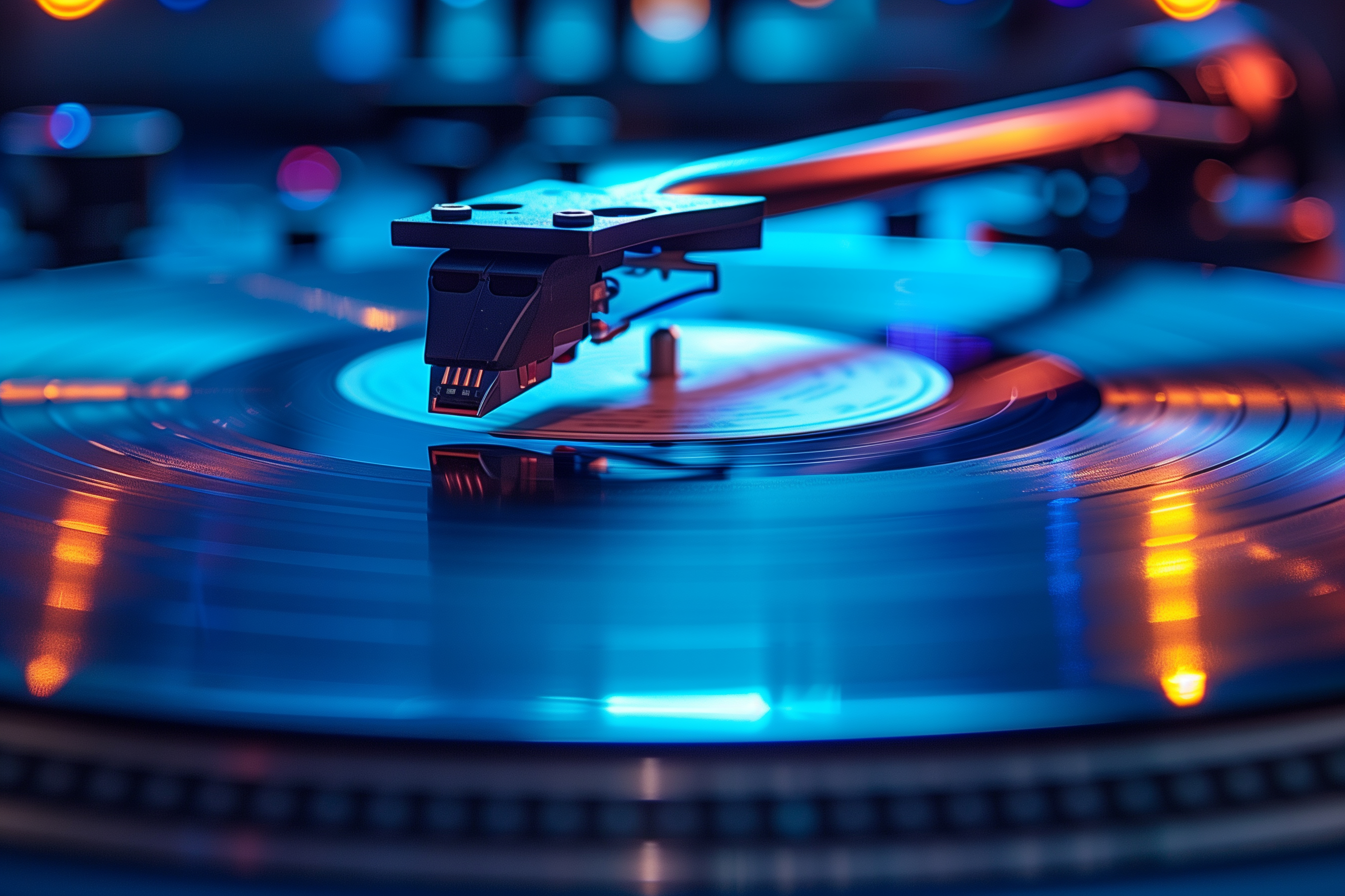 Moderner Plattenspieler beleuchtet in blauem Neonlicht