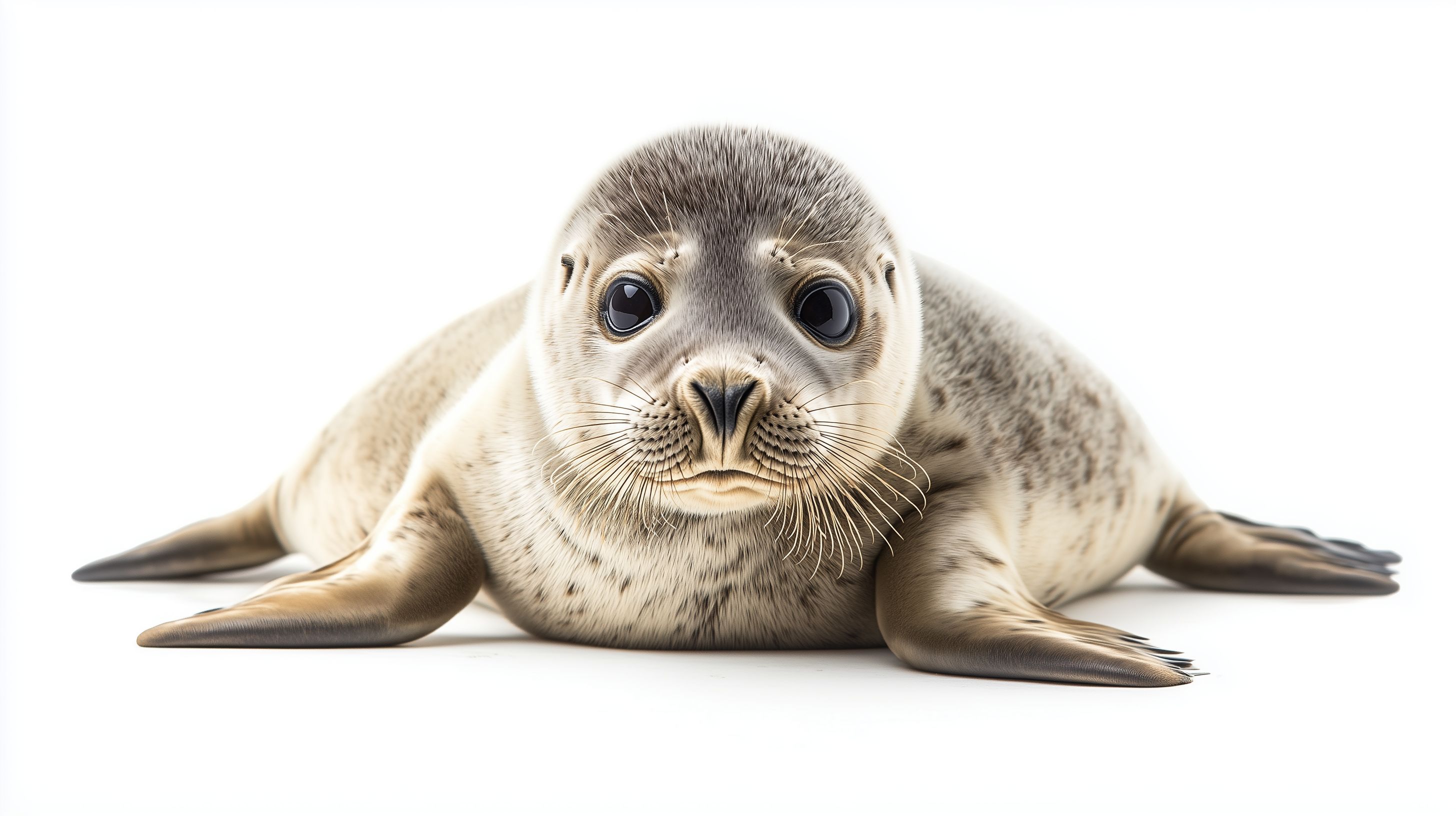 Niedliches Robbenbaby auf weißem Hintergrund isoliert