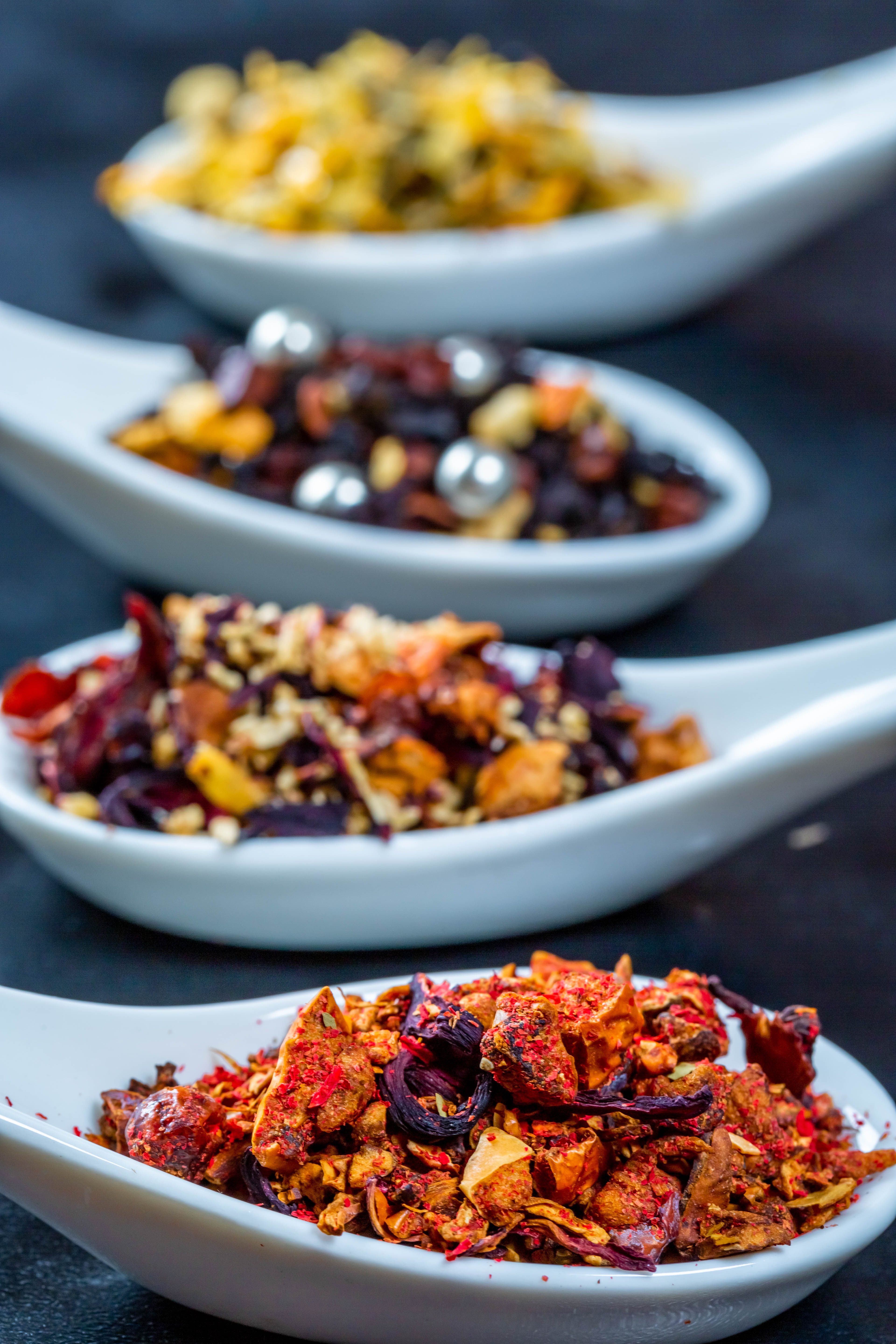 Options for different varieties of natural tea with fruits, berries and flowers