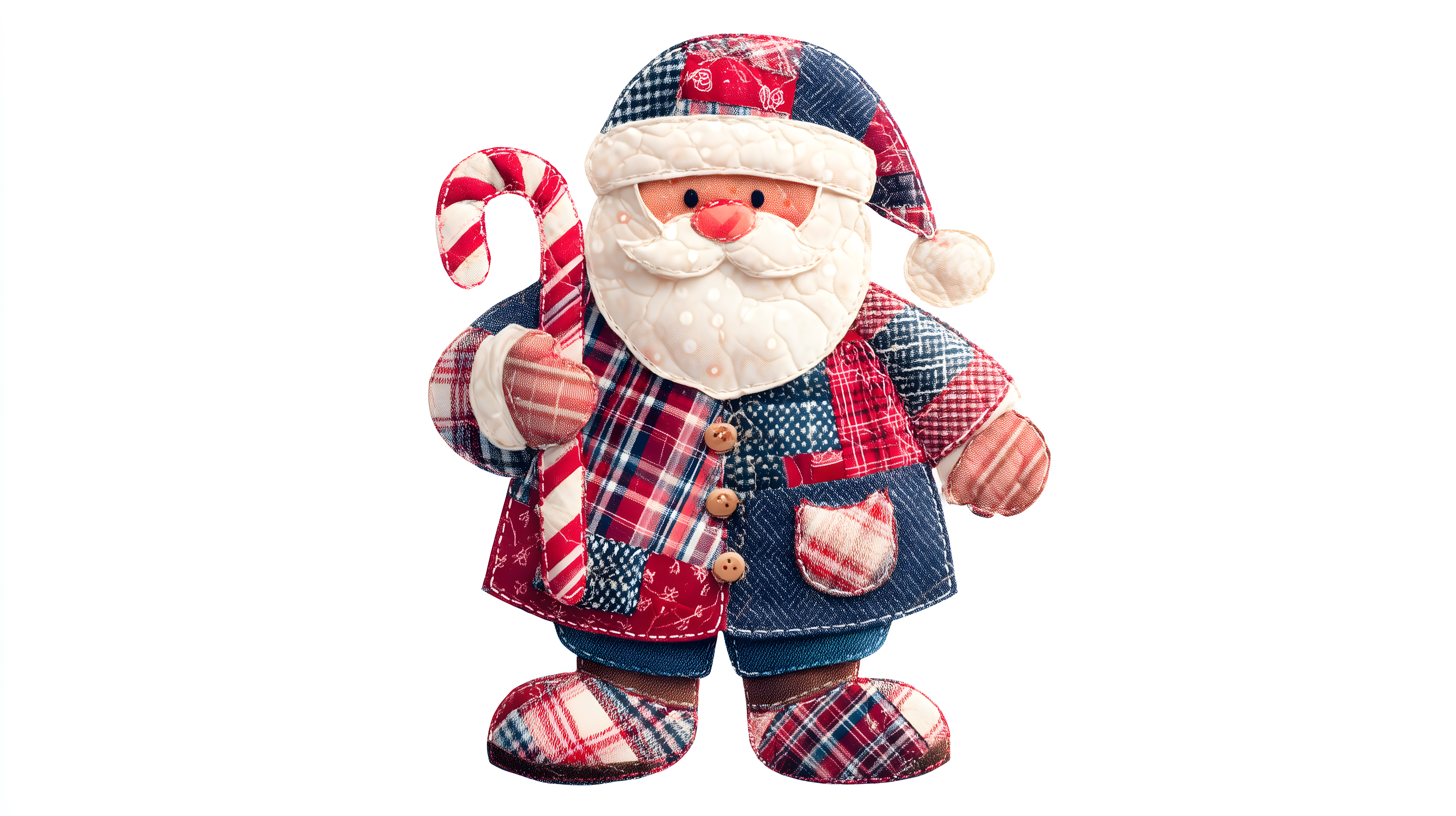 Patchwork Weihnachtsmann Stofffigur mit Zuckerstange
