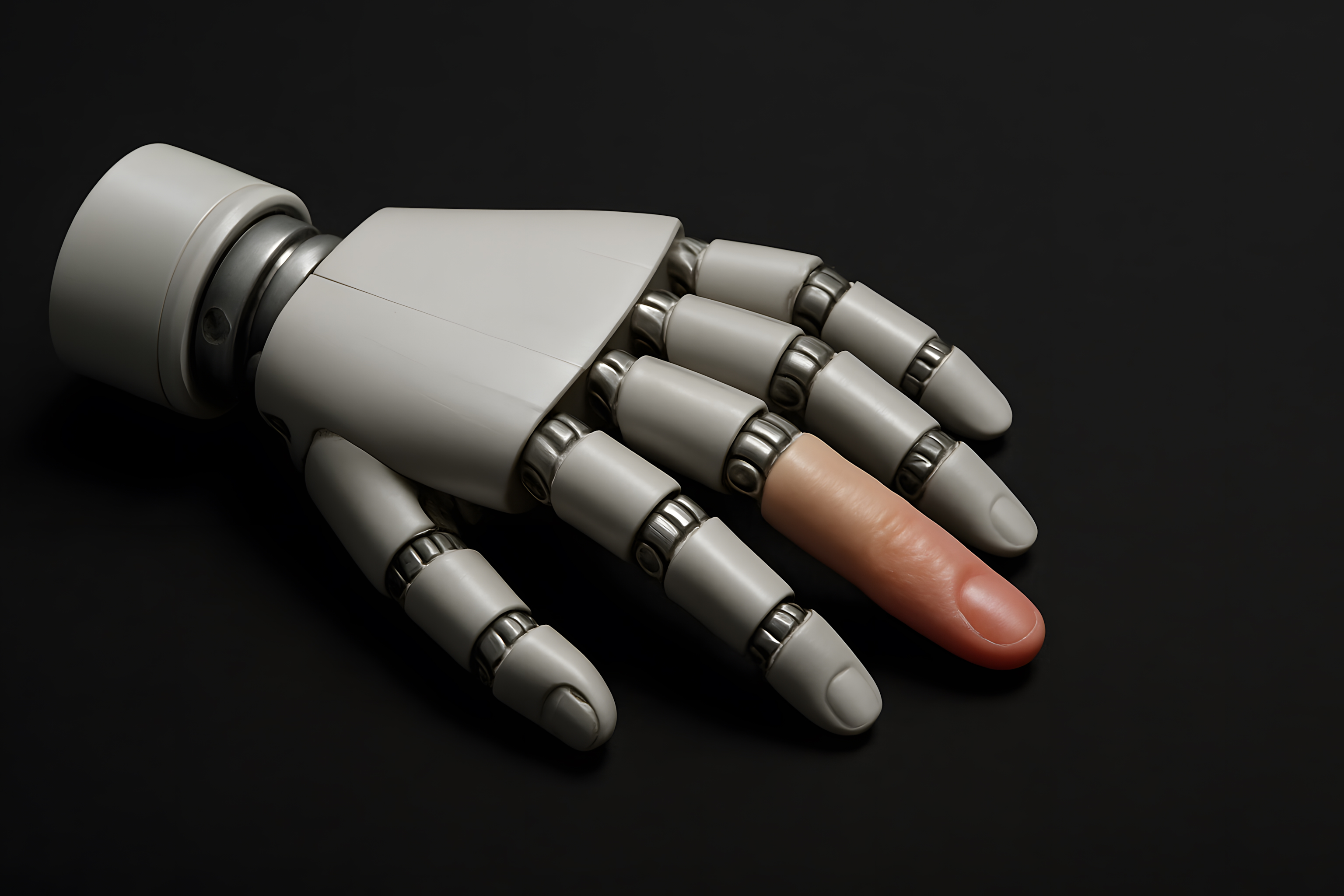 Roboterhand mit menschlichem Finger – Zukunft der Mensch-Maschine-Interaktion