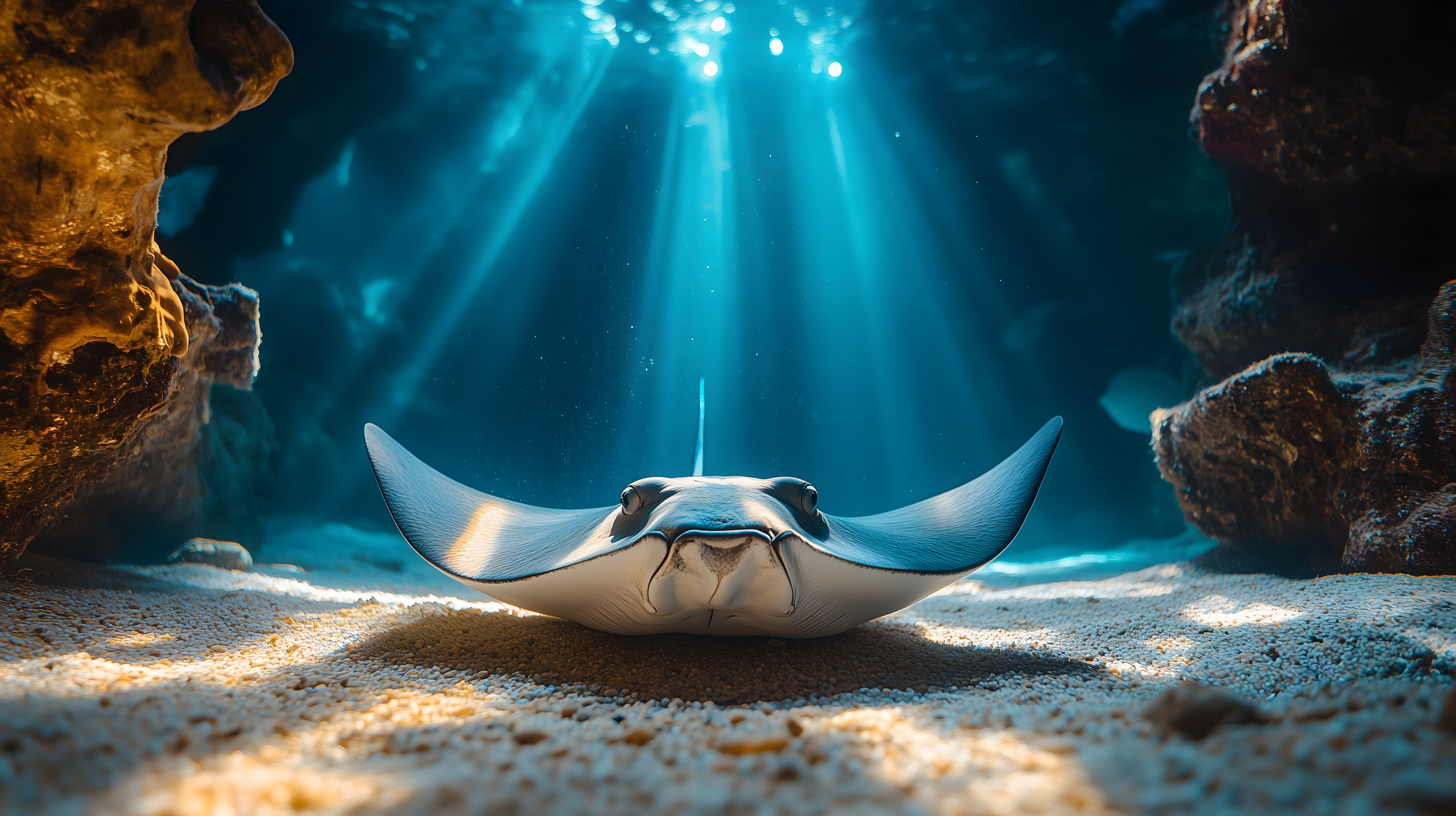 Rochen auf Meeresboden in friedlicher Unterwasserlandschaft