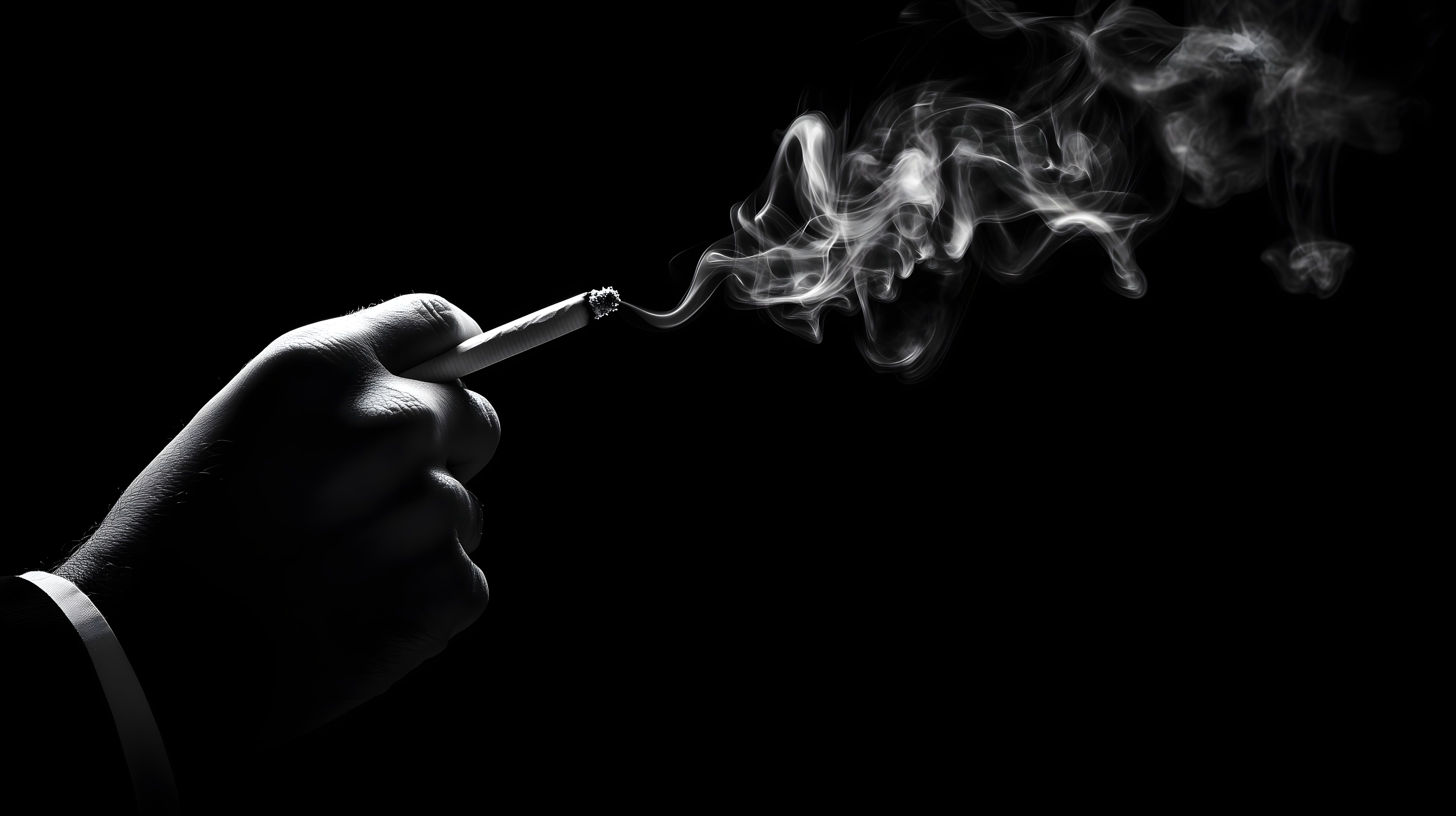 Schwarz-Weiß-Fotografie: Hand mit brennender Zigarette