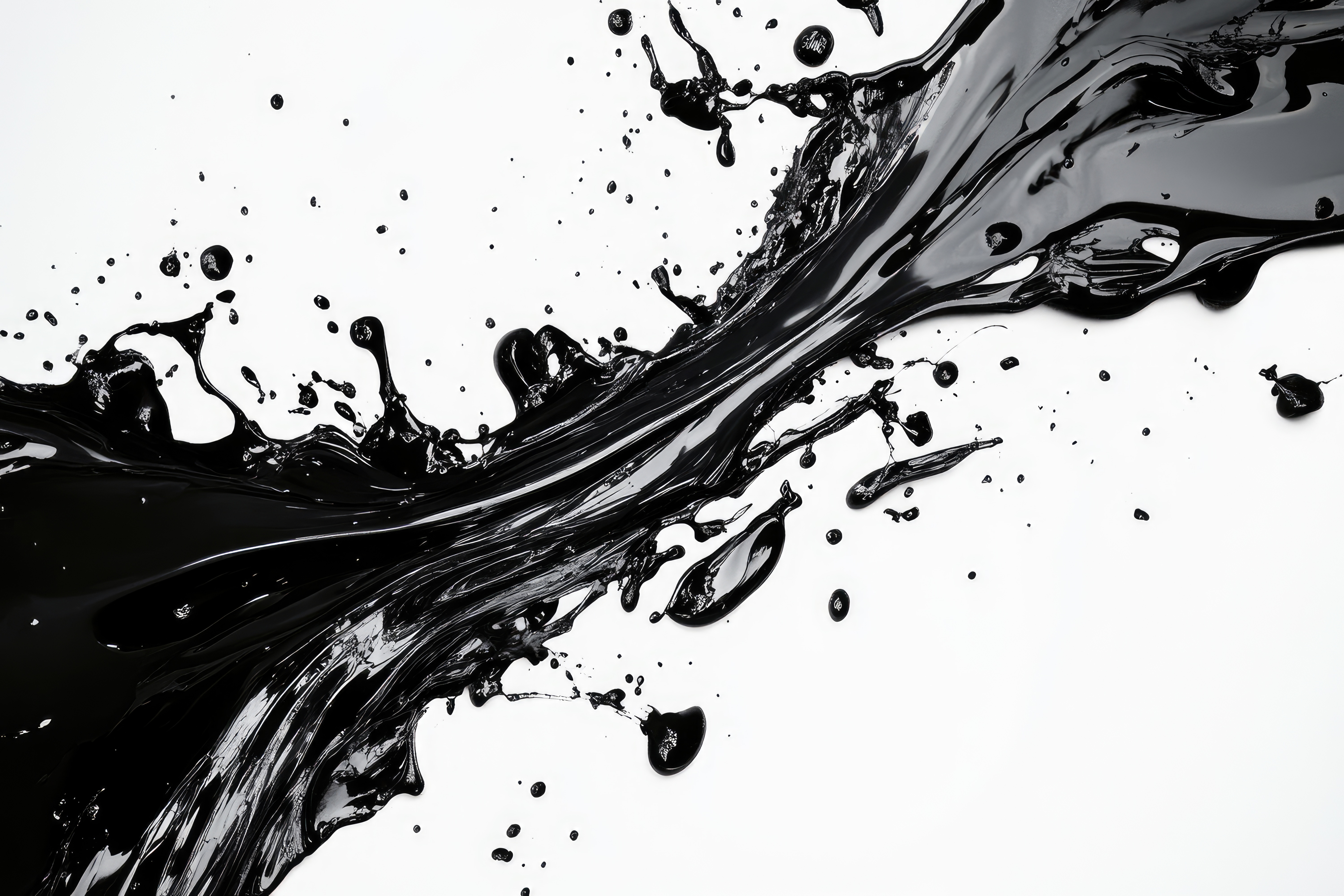 Schwarze Farbspritzer auf weißem Hintergrund