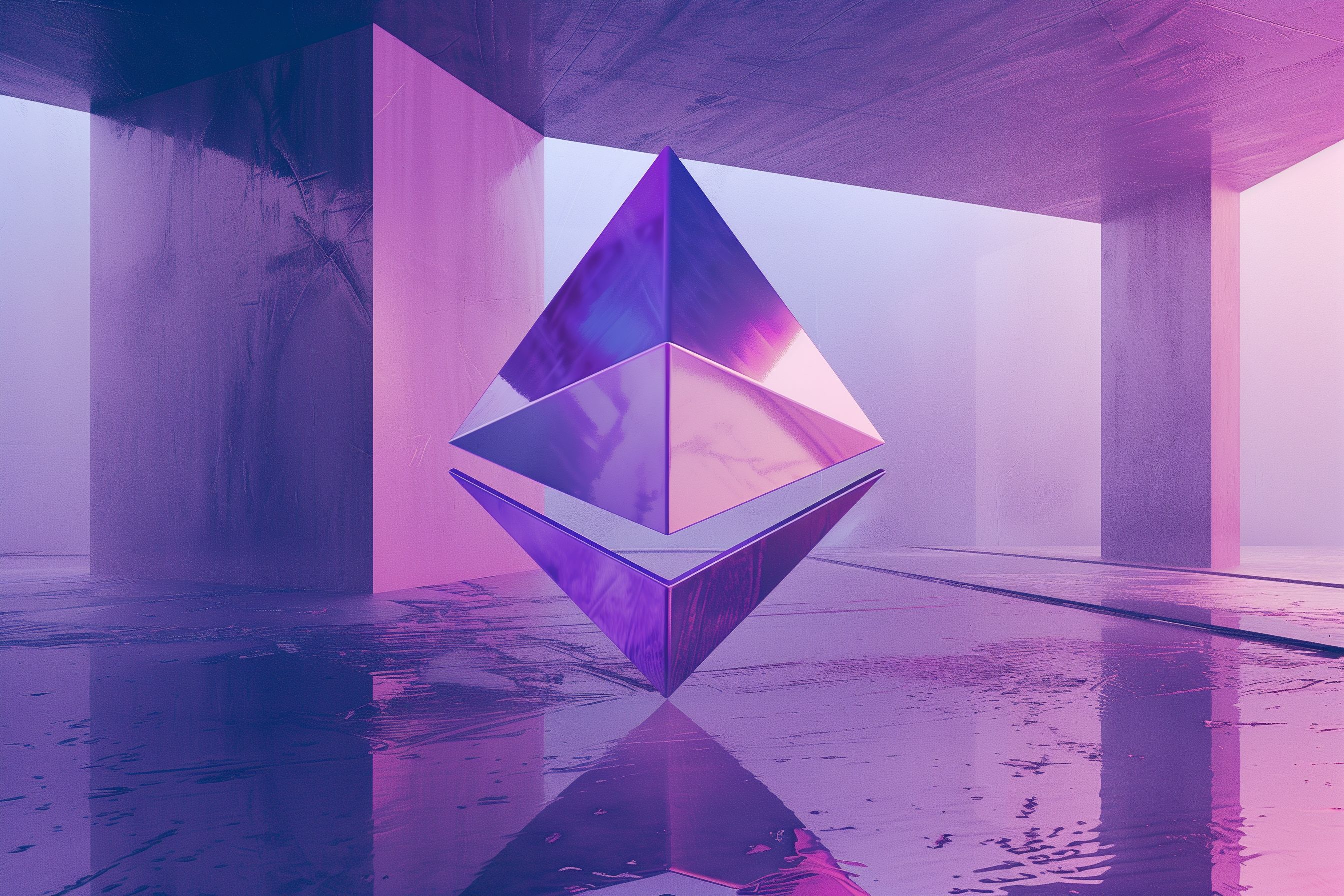 Schwebendes Ethereum-Logo - Moderne Architektur und Licht