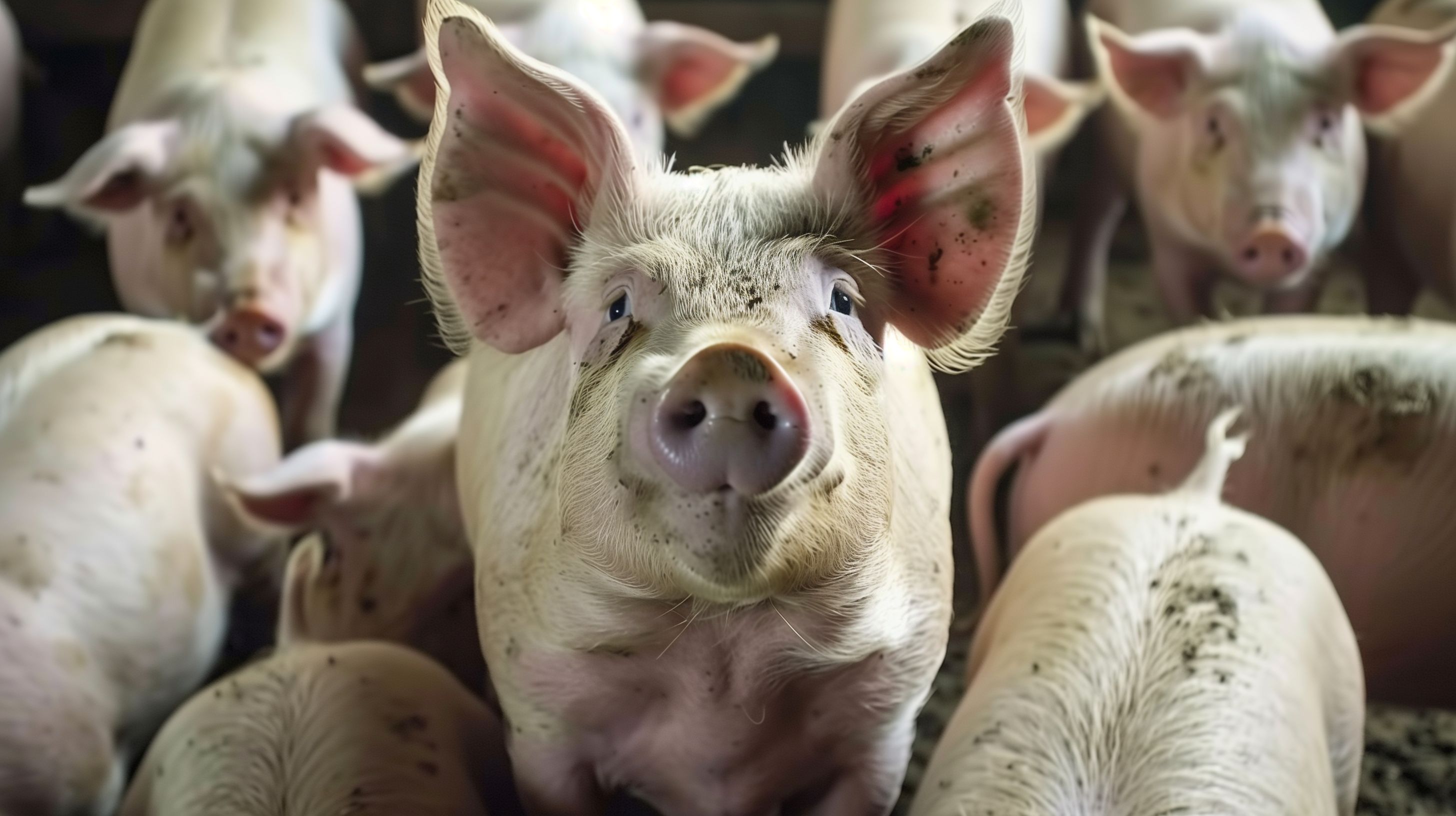 Schweinezucht in der Landwirtschaft - Nahaufnahme von Schweinen im Stall