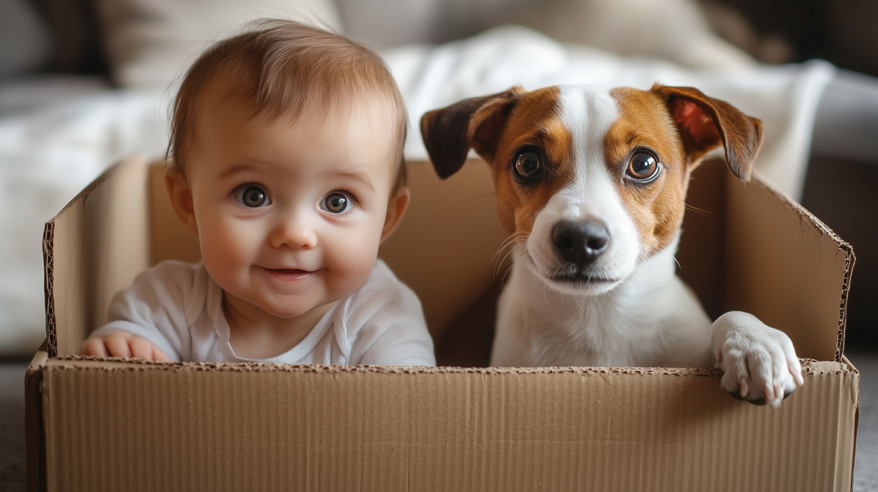 Umzug mit Baby und Hund zusammen in einer Box