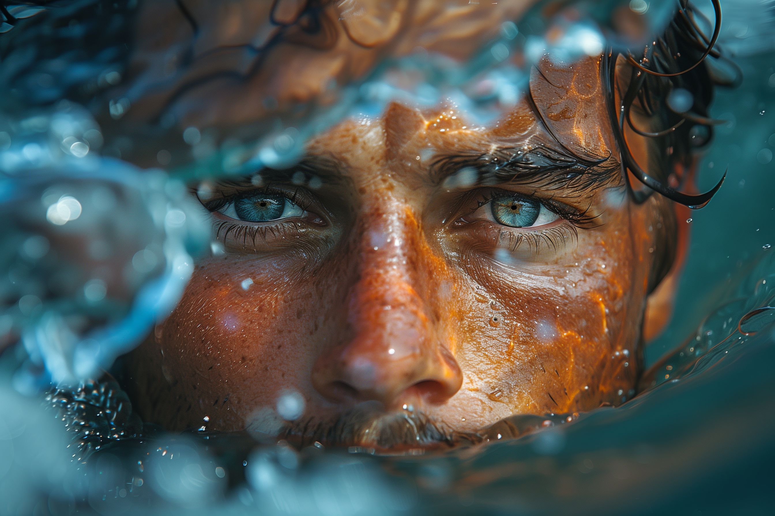 Unterwasserporträt eines Mannes mit intensivem Blick