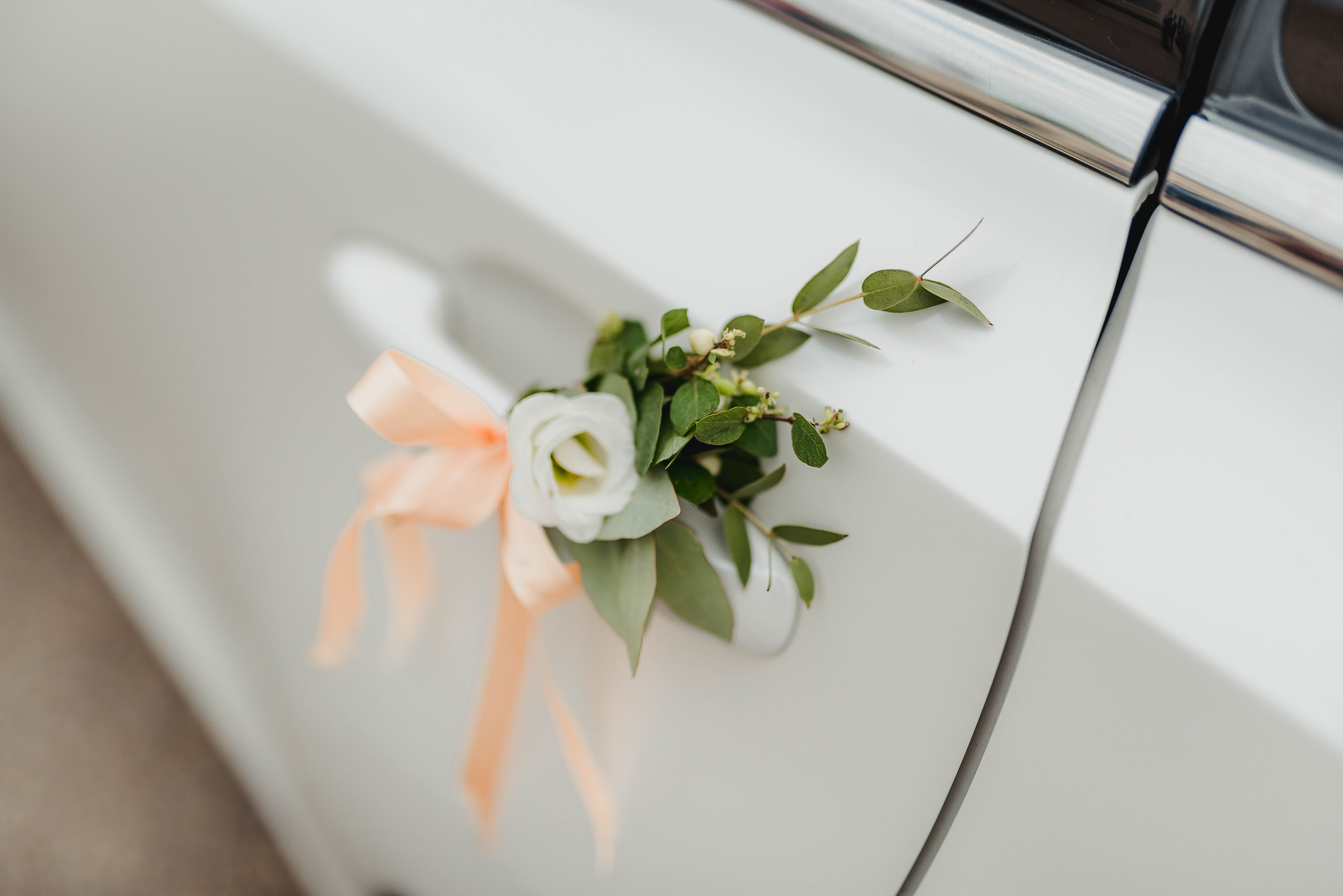Wedding Car Decorated With White Rose