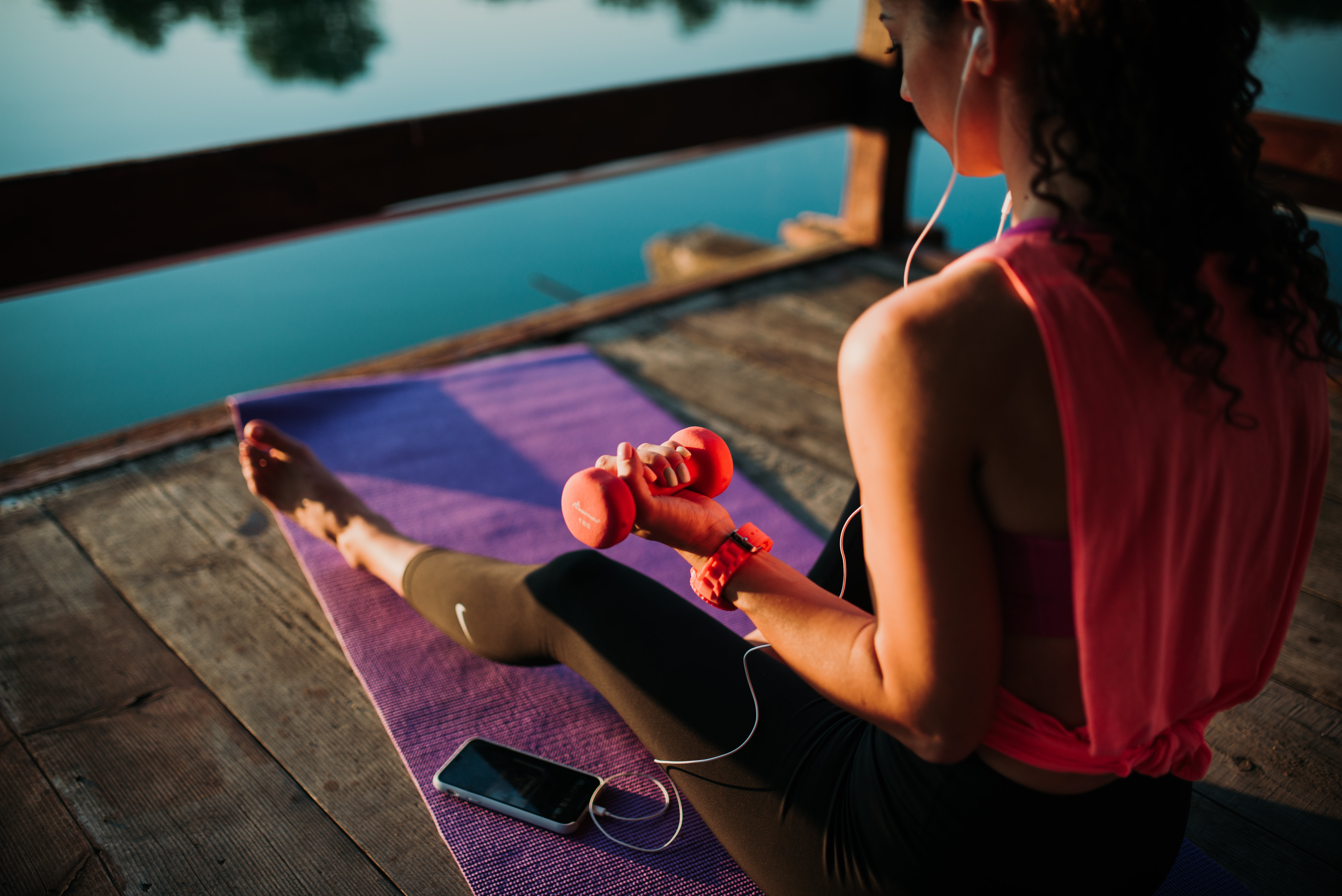 Woman listening music while working out.
