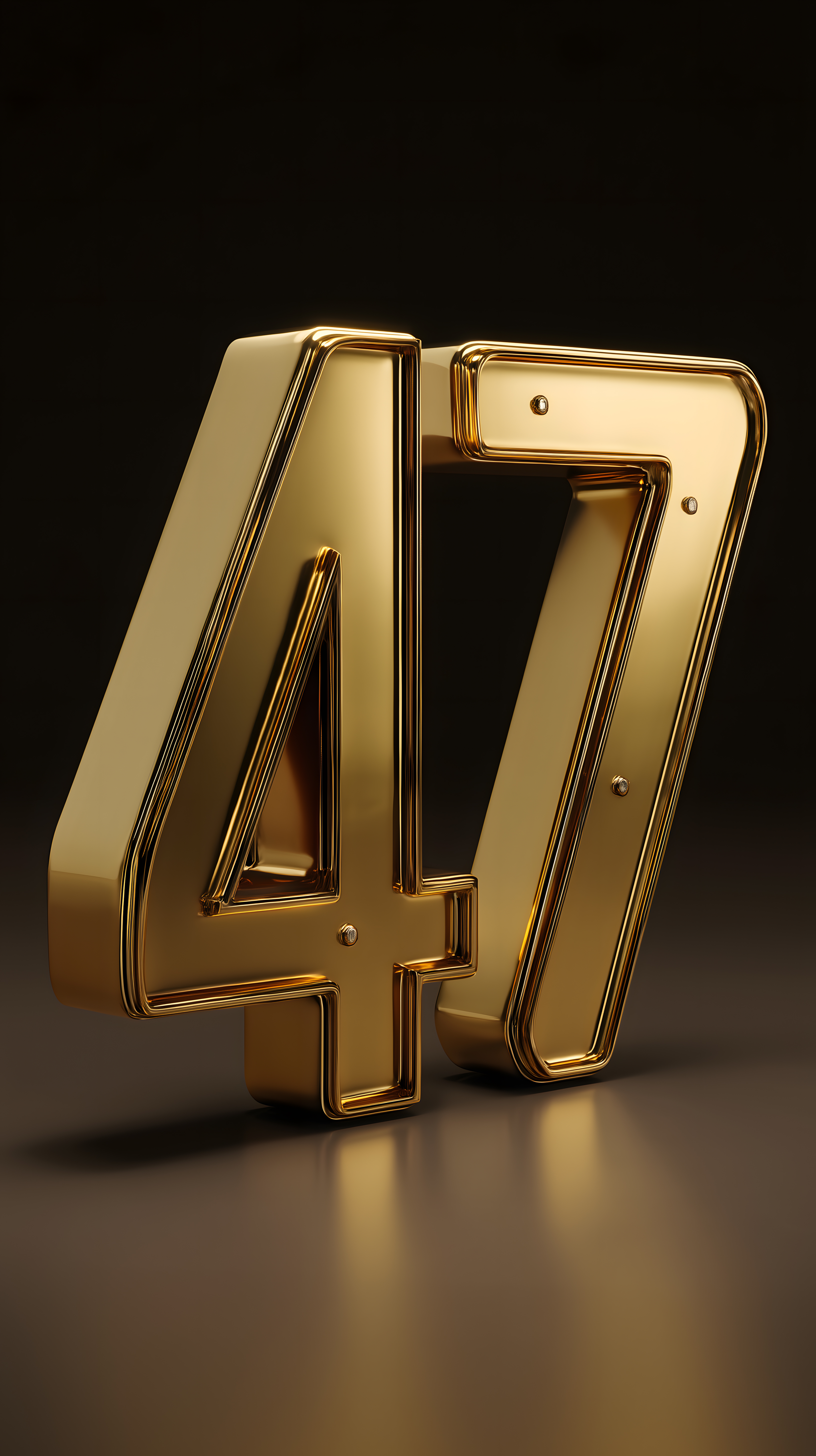 Zahl 47 aus Gold mit Schraubenelementen auf dunklem Hintergrund