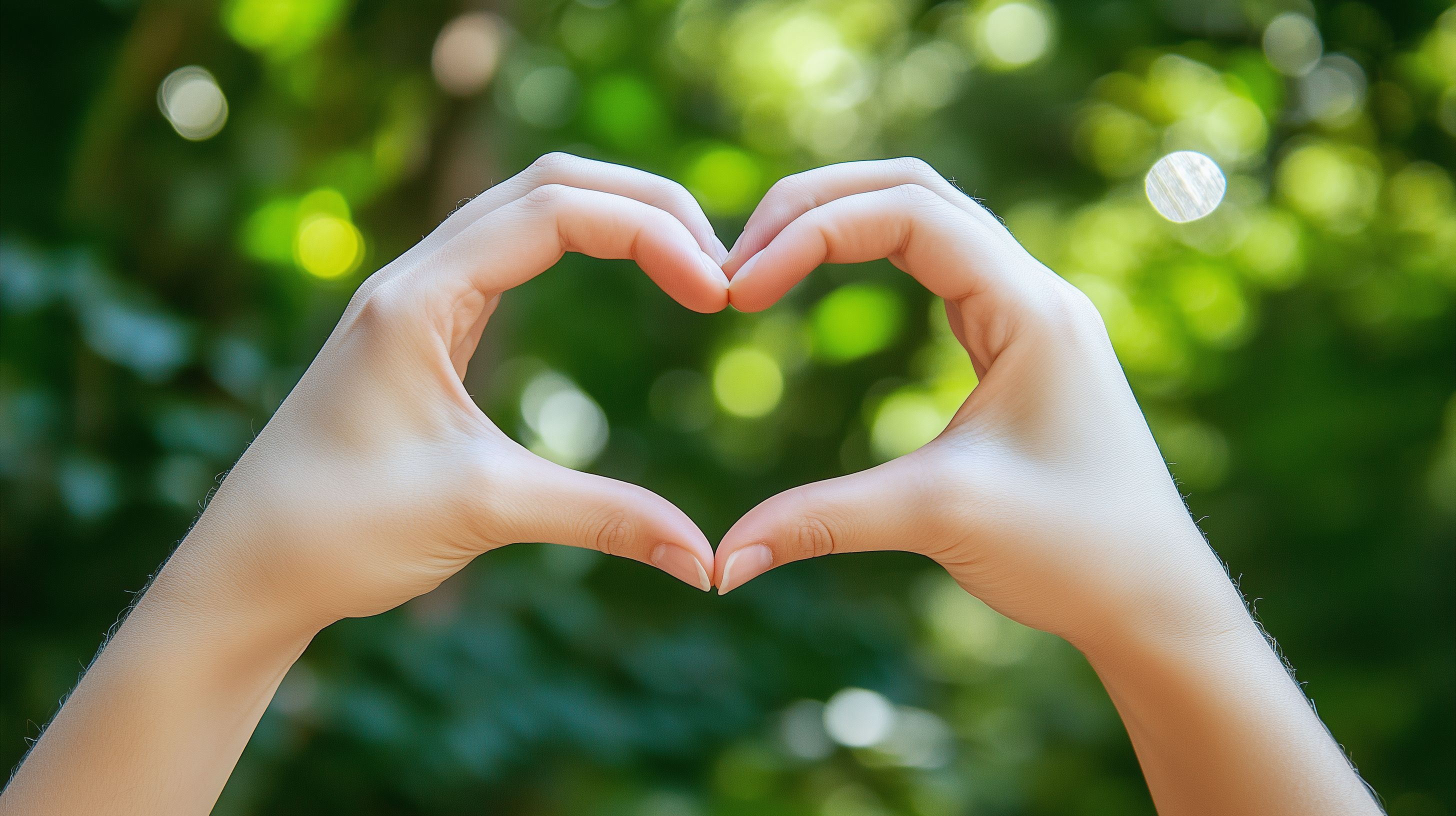 Zwei Hände formen ein Herz mit Platz für Text in der Mitte